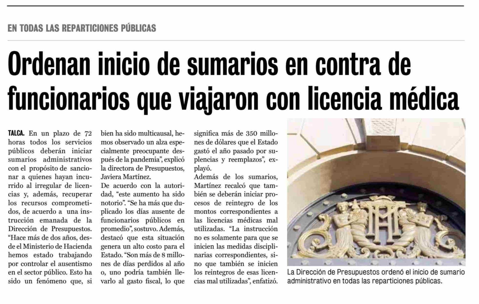 Título: Ordenan inicio de sumarios en contra de funcionarios que viajaron con licencia médica