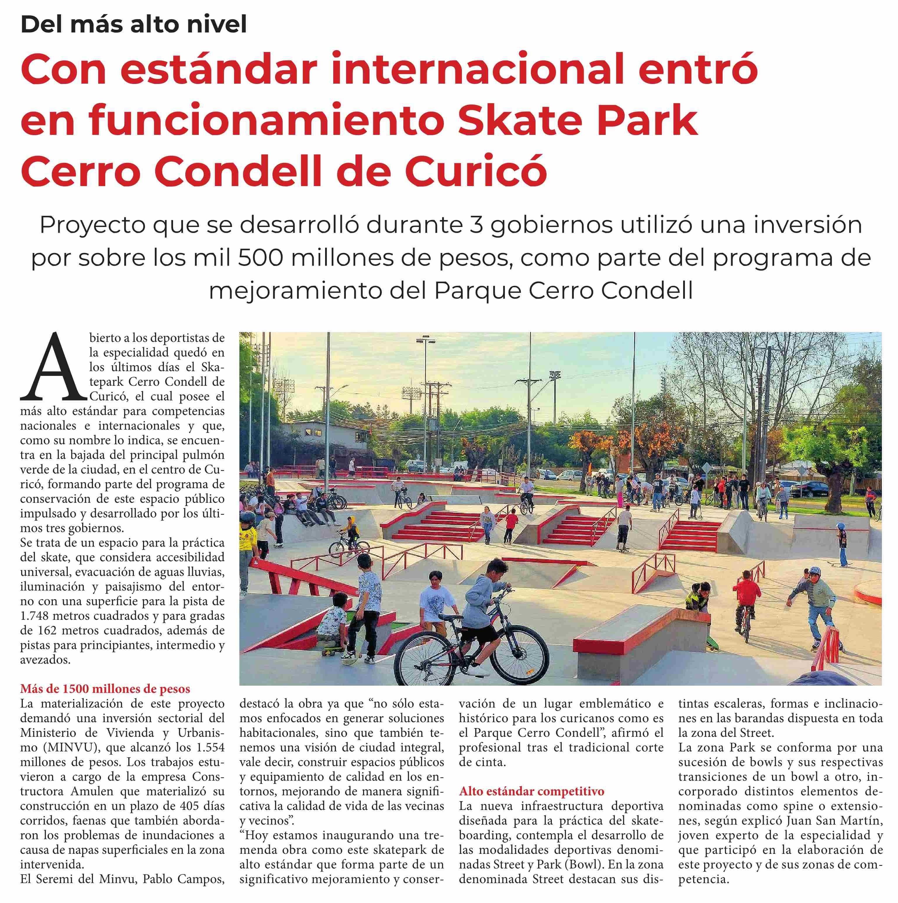 | Título: | Con estándar internacional entró en funcionamiento Skate Park Cerro Condeil de Curicó |