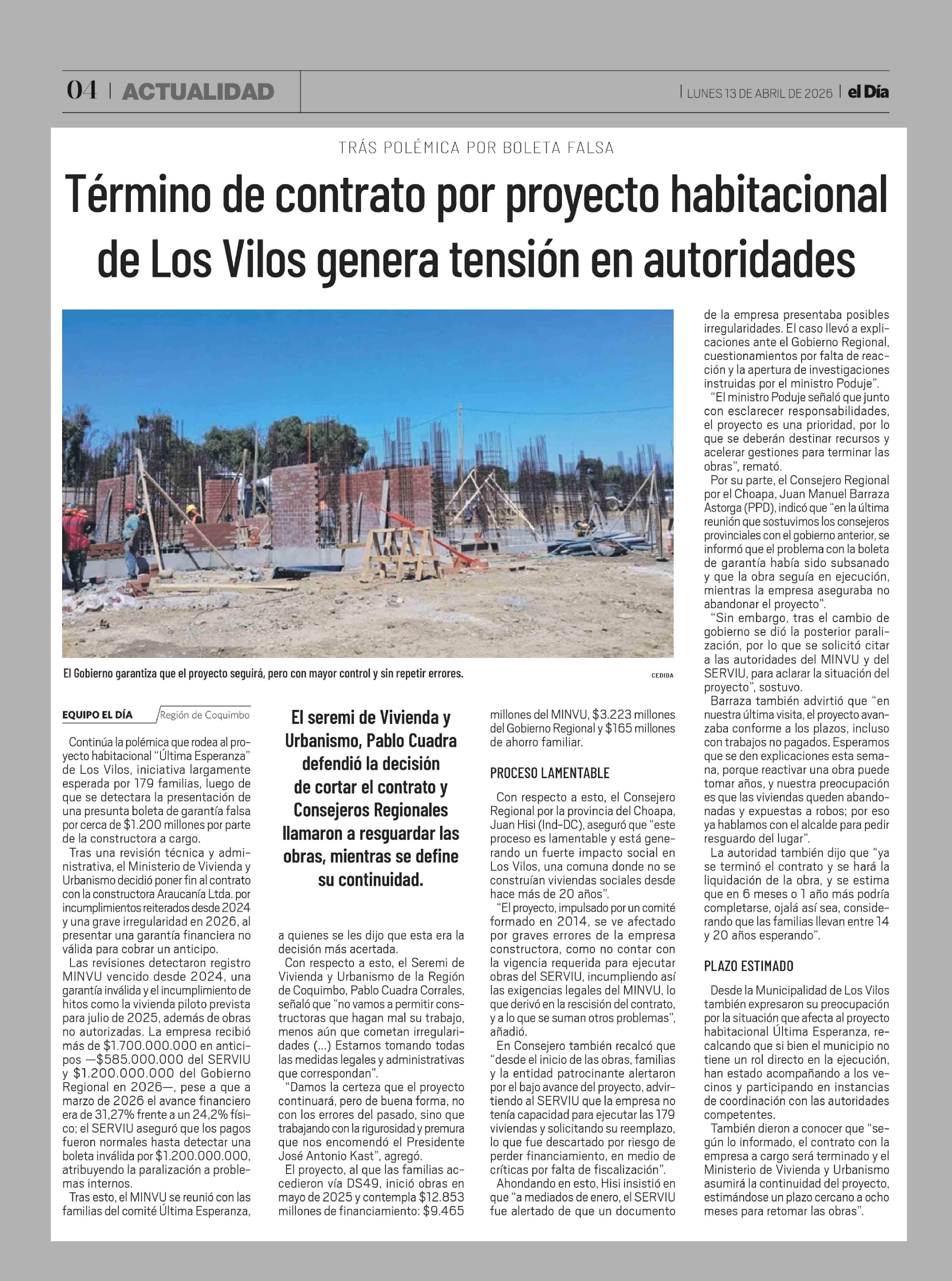 Título: Término de contrato por proyecto habitacional de Los Vilos genera tensión en autoridades