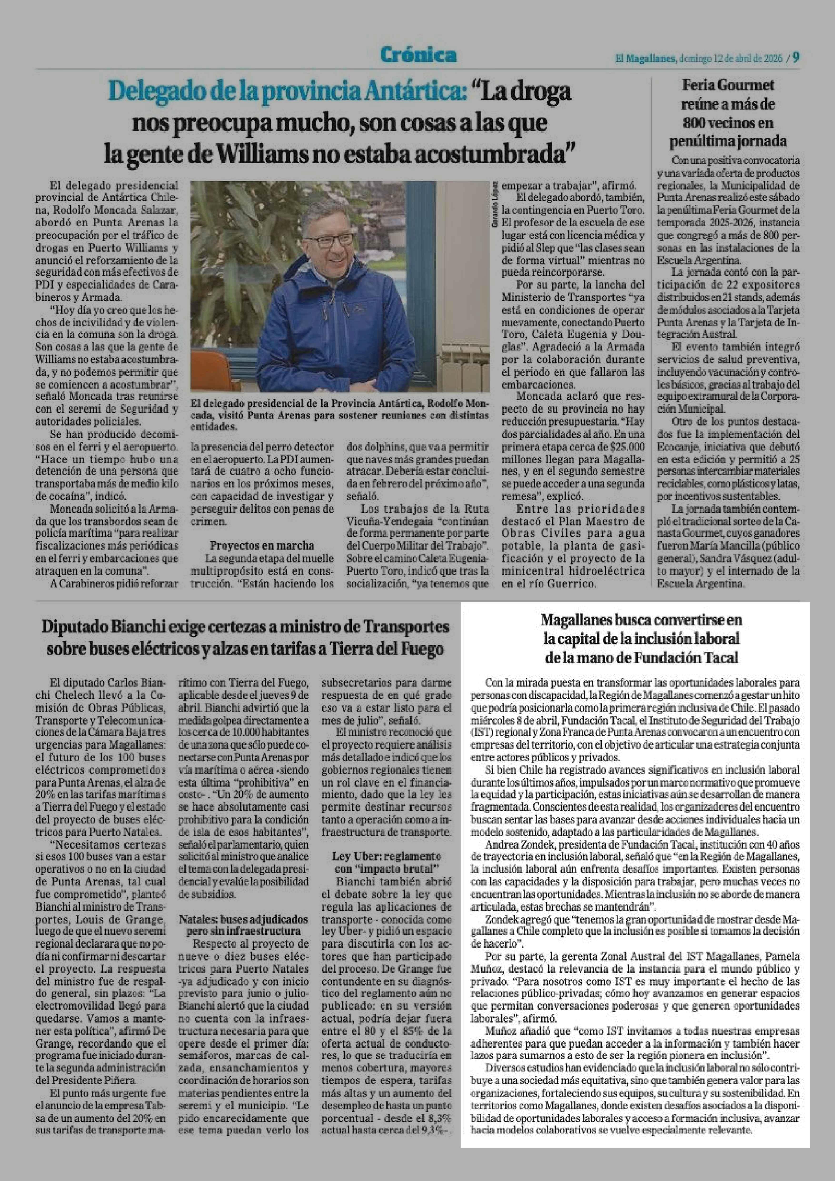 Magallanes busca convertirse en la capital de la inclusión laboral de la mano de Fundación Tacal 12-04-2026 El Magallanes |
