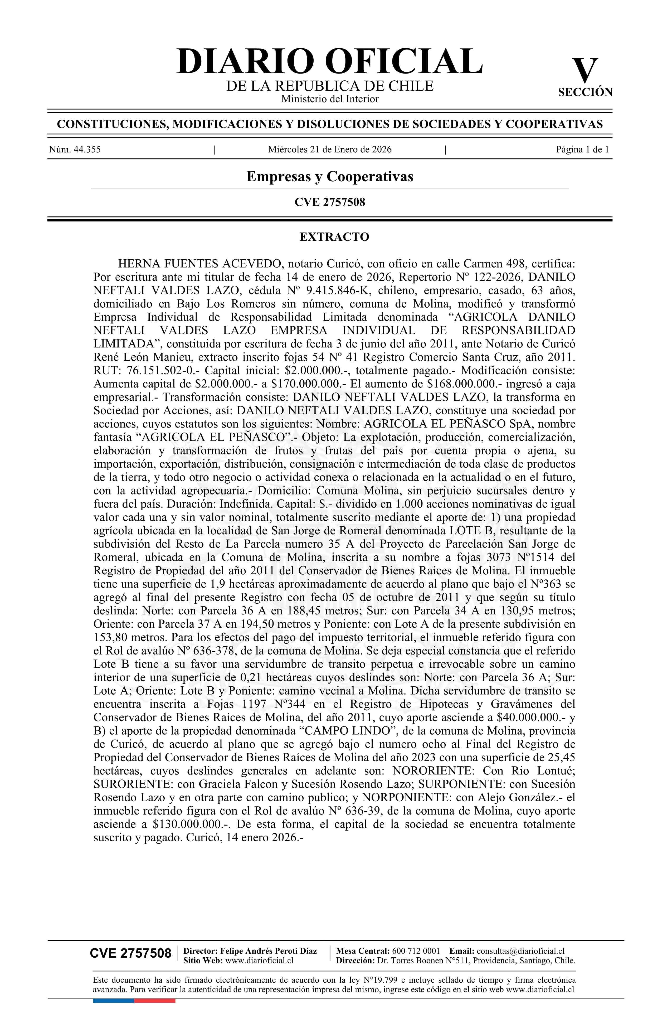 Título: AGRICOLA DANILO NEFTALI VALDES LAZO EMPRESA INDIVIDUAL DE RESPONSABILIDAD LIMITADA