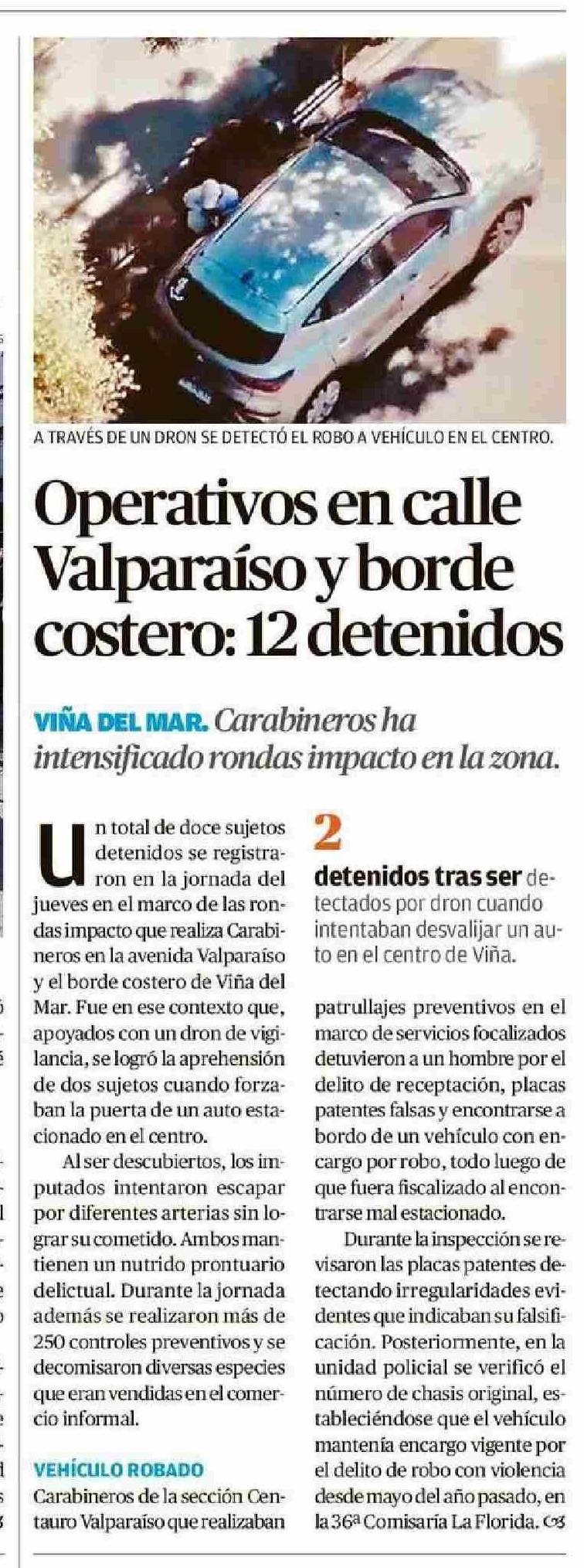 | Título: | Operativos en calle Valparaíso y borde costero: 12 detenidos |