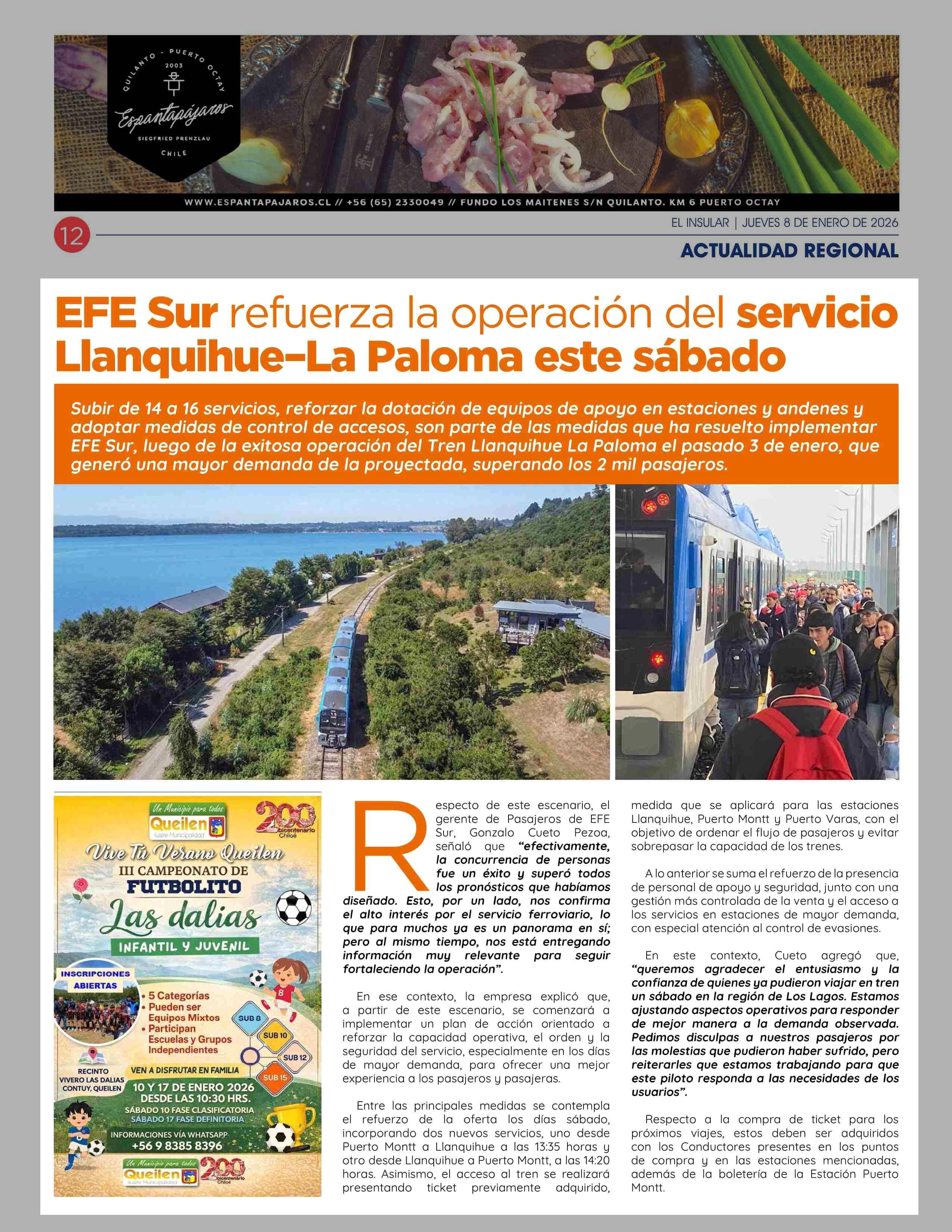 EFE Sur refuerza la operación del servicio Llanquihue-La Paloma este sábado 08-01-2026 El Insular |