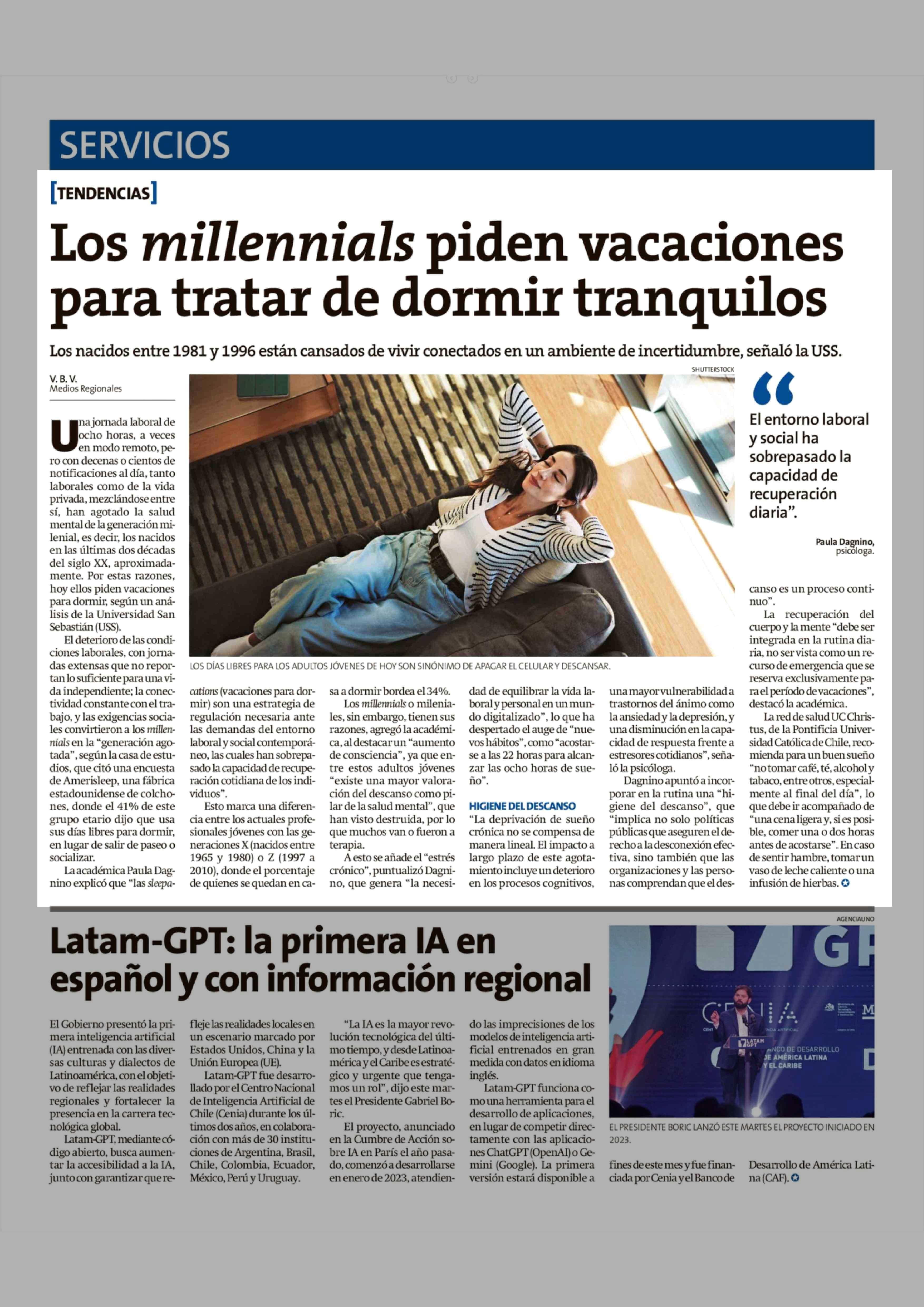 Título: Los millennials piden vacaciones para tratar de dormir tranquilos