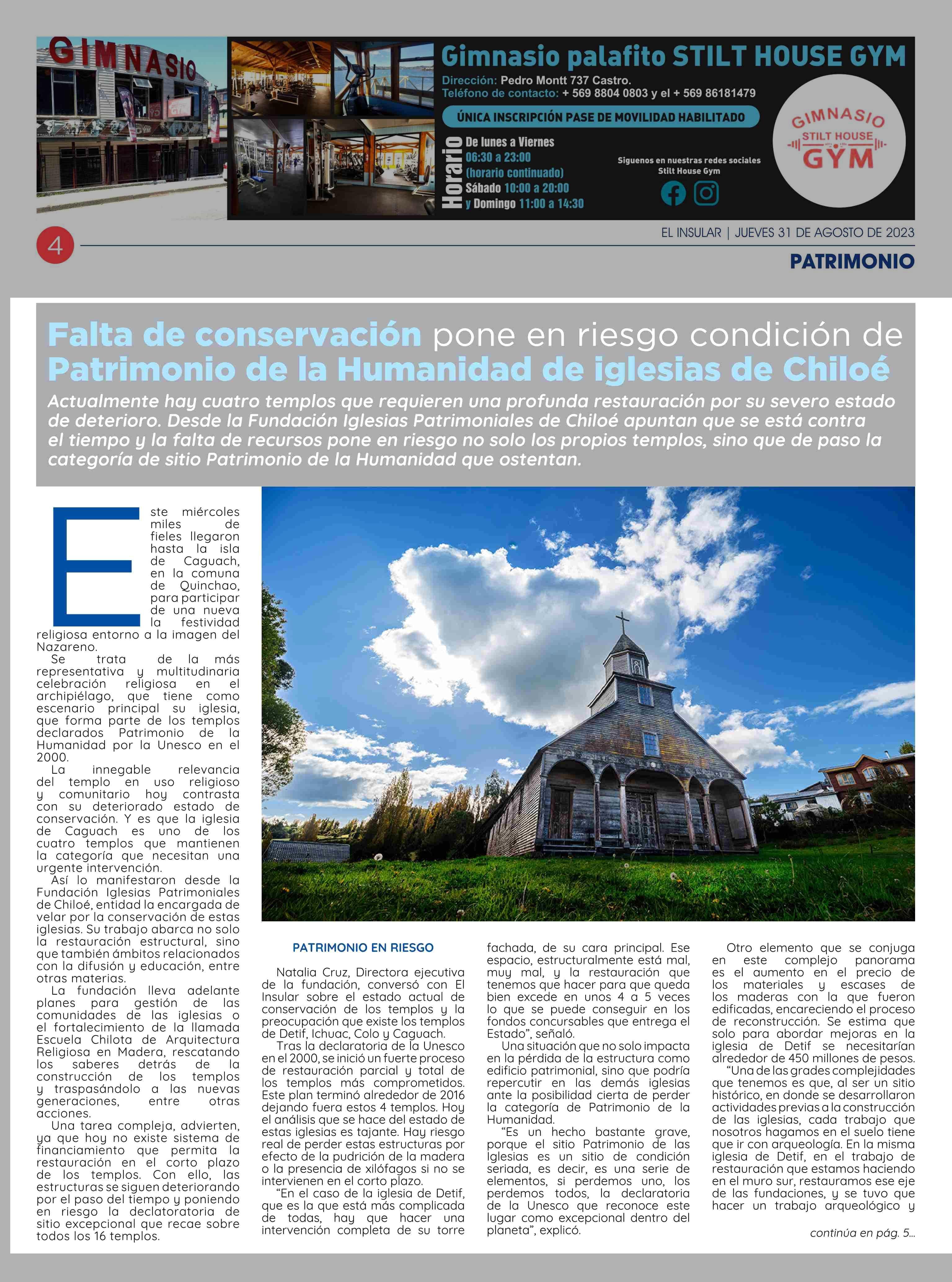 Falta de conservación pone en riesgo condición de Patrimonio de la Humanidad de iglesias de Chiloé 31-08-2023 El Insular |