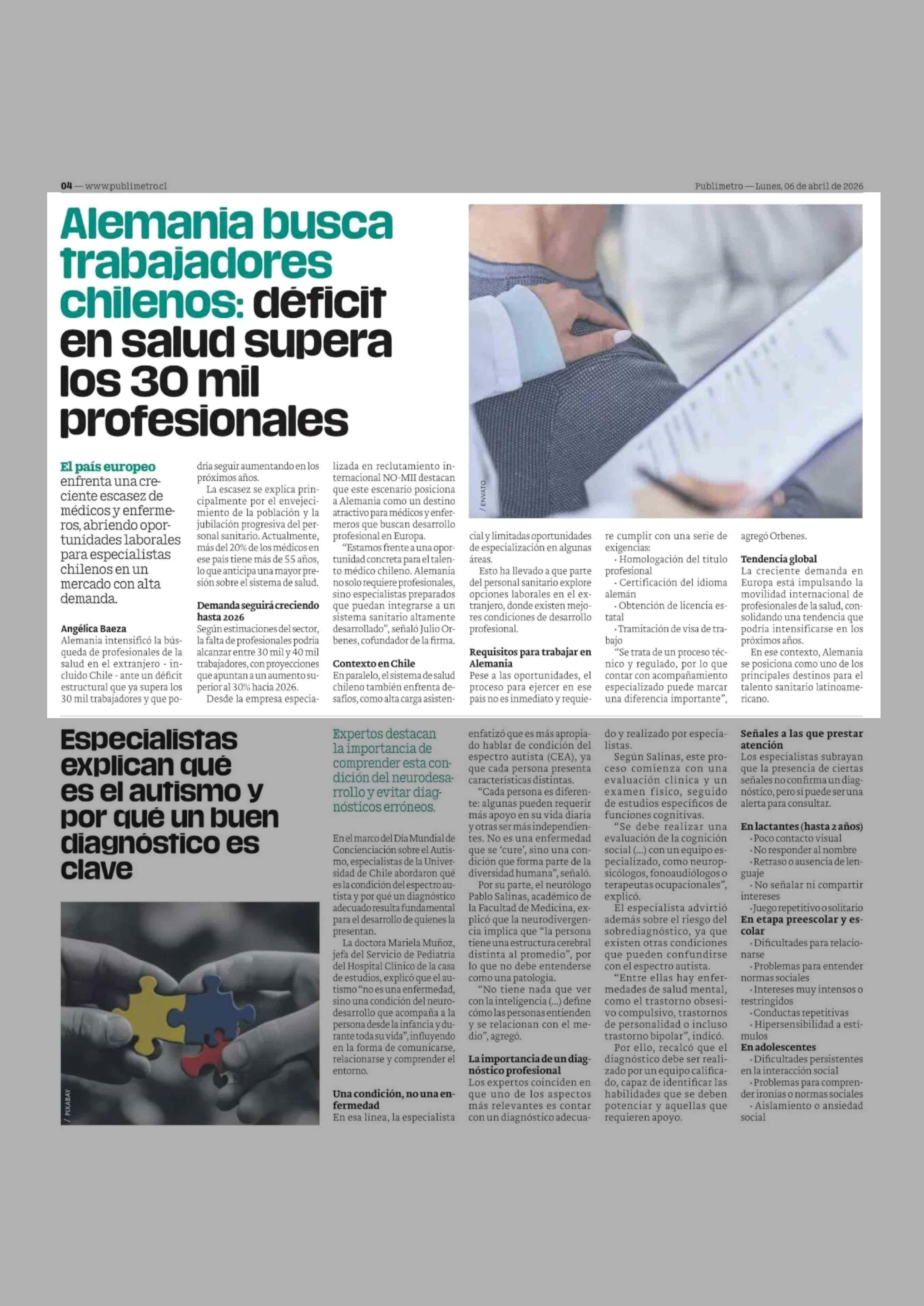 Título: Alemania busca trabajadores chilenos: deficit en salud supera los 30 mil profesionales