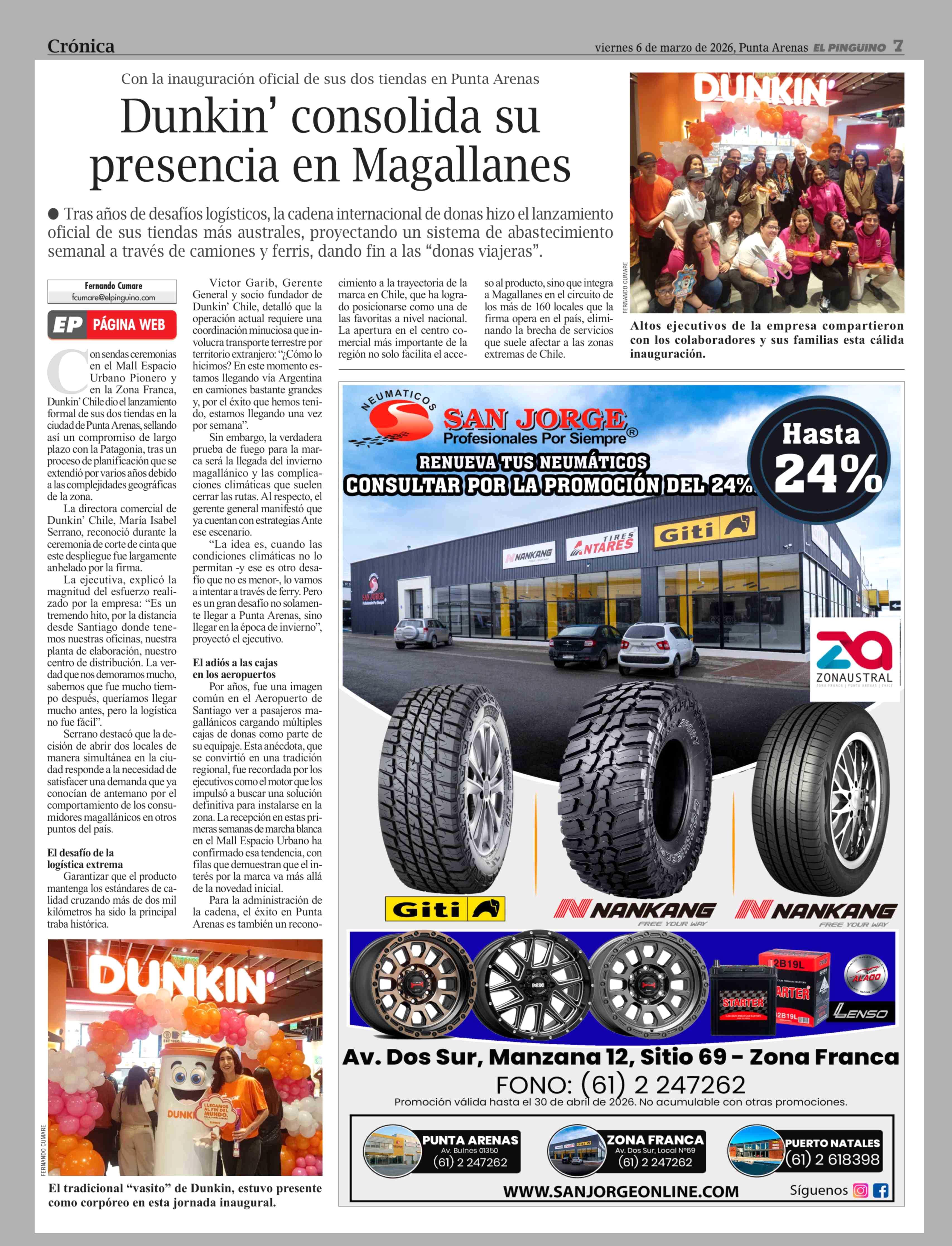 Dunkin' consolida su presencia en Magallanes 06-03-2026 El Pingüino |