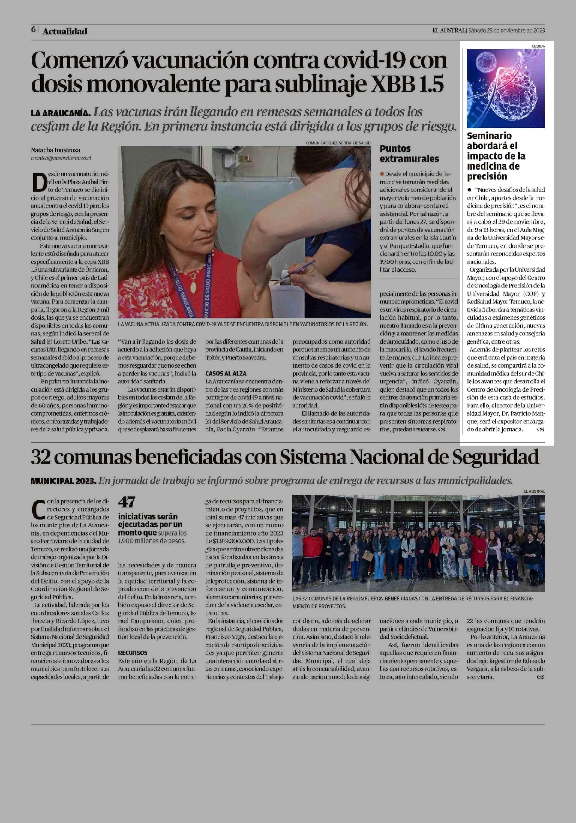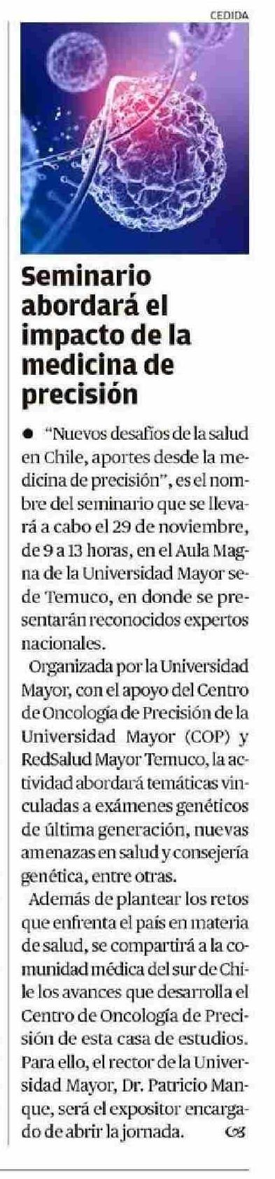 Seminario abordará el impacto de la medicina de precisión 25-11-2023 El Austral de la Araucanía |