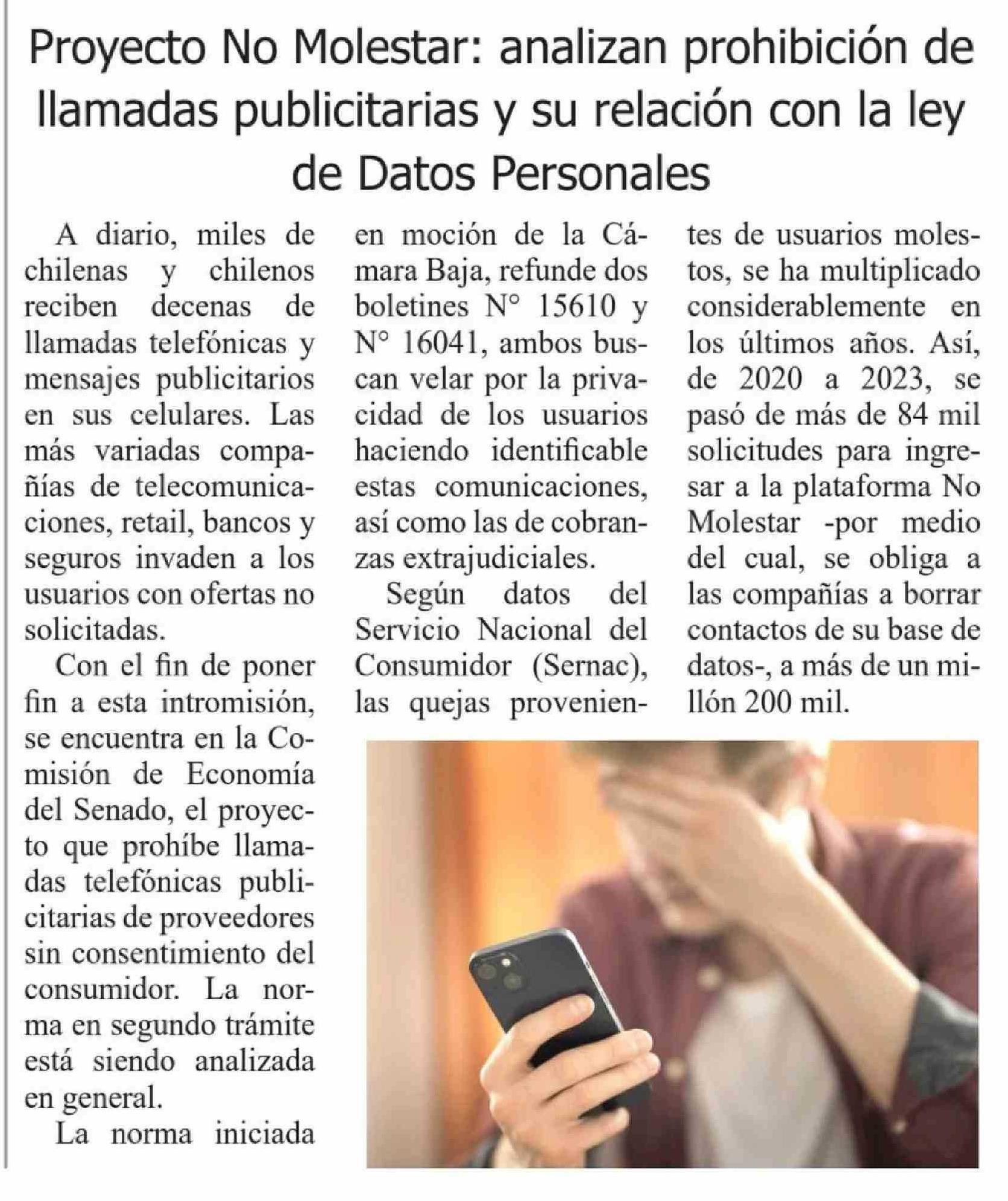 Proyecto No Molestar: analizan prohibición de llamadas publicitarias y su relación con la ley de Datos Personales 03-03-2026 El Heraldo |
