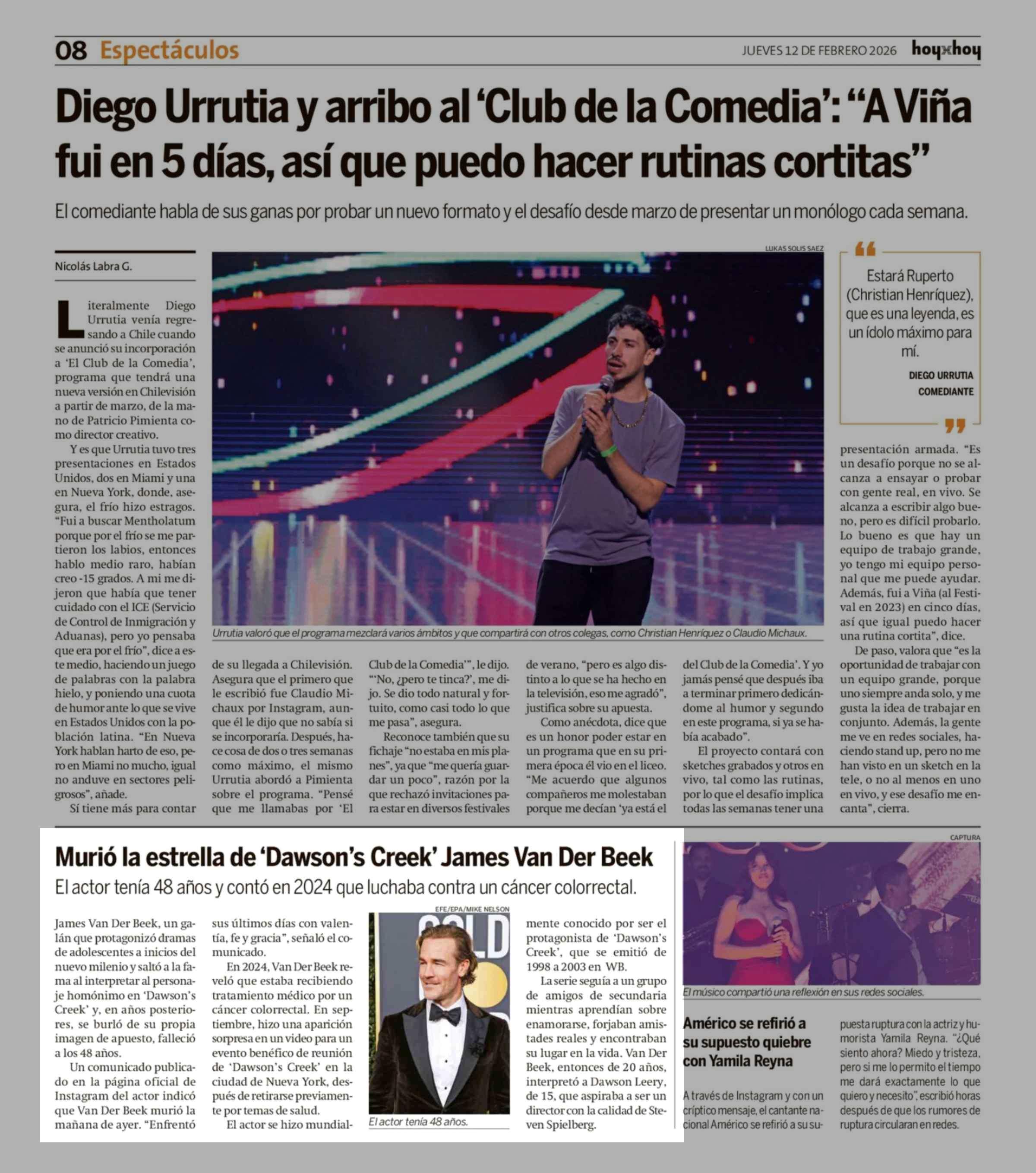 Murió la estrella de 'Dawson's Creek' James Van Der Beek 12-02-2026 Hoy x Hoy |