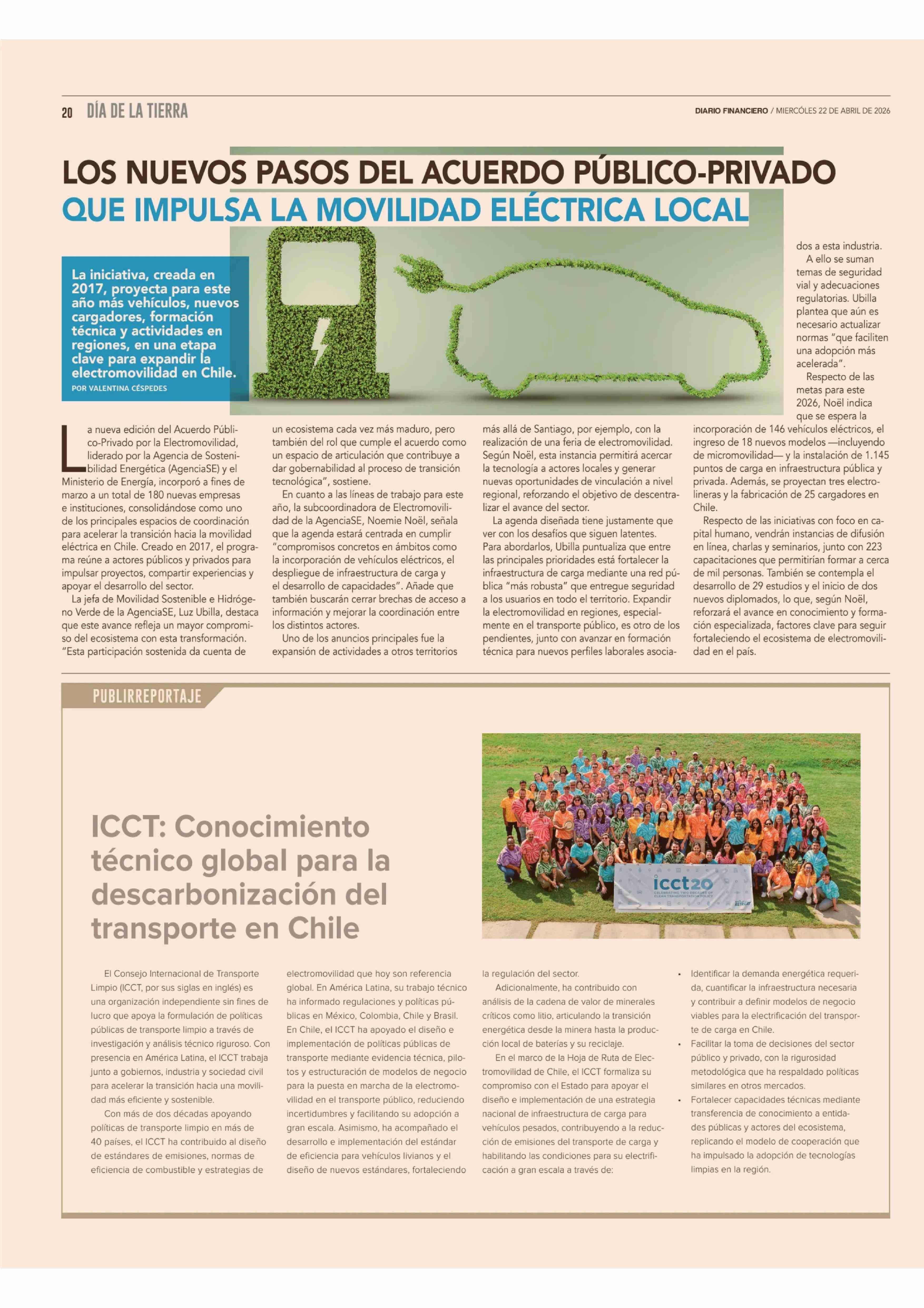 ICCT: Conocimiento técnico global para la descarbonización del transporte en Chile 22-04-2026 Diario Financiero |