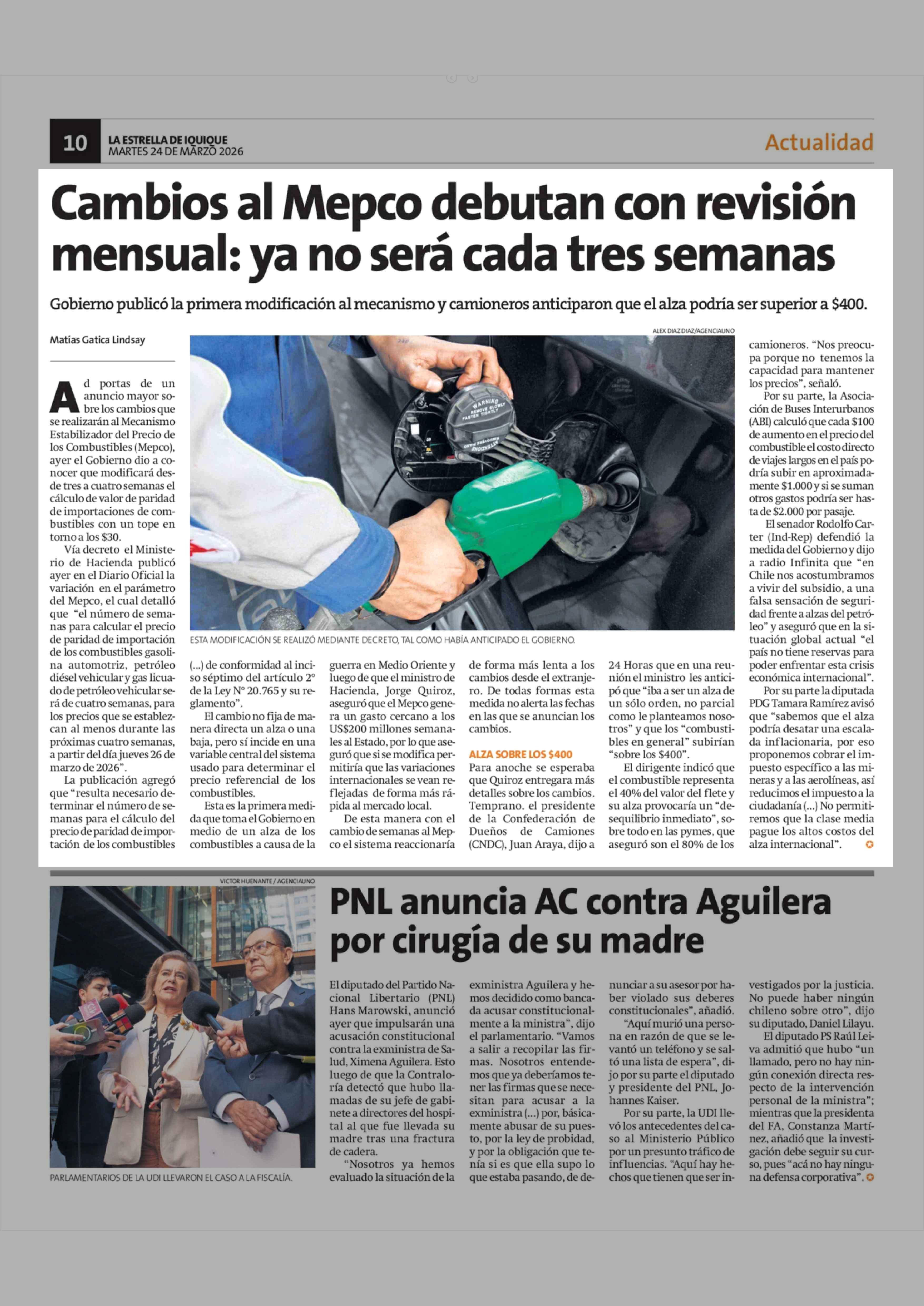 Cambios al Mepco debutan con revisión mensual: ya no será cada tres semanas 24-03-2026 La Estrella de Iquique |