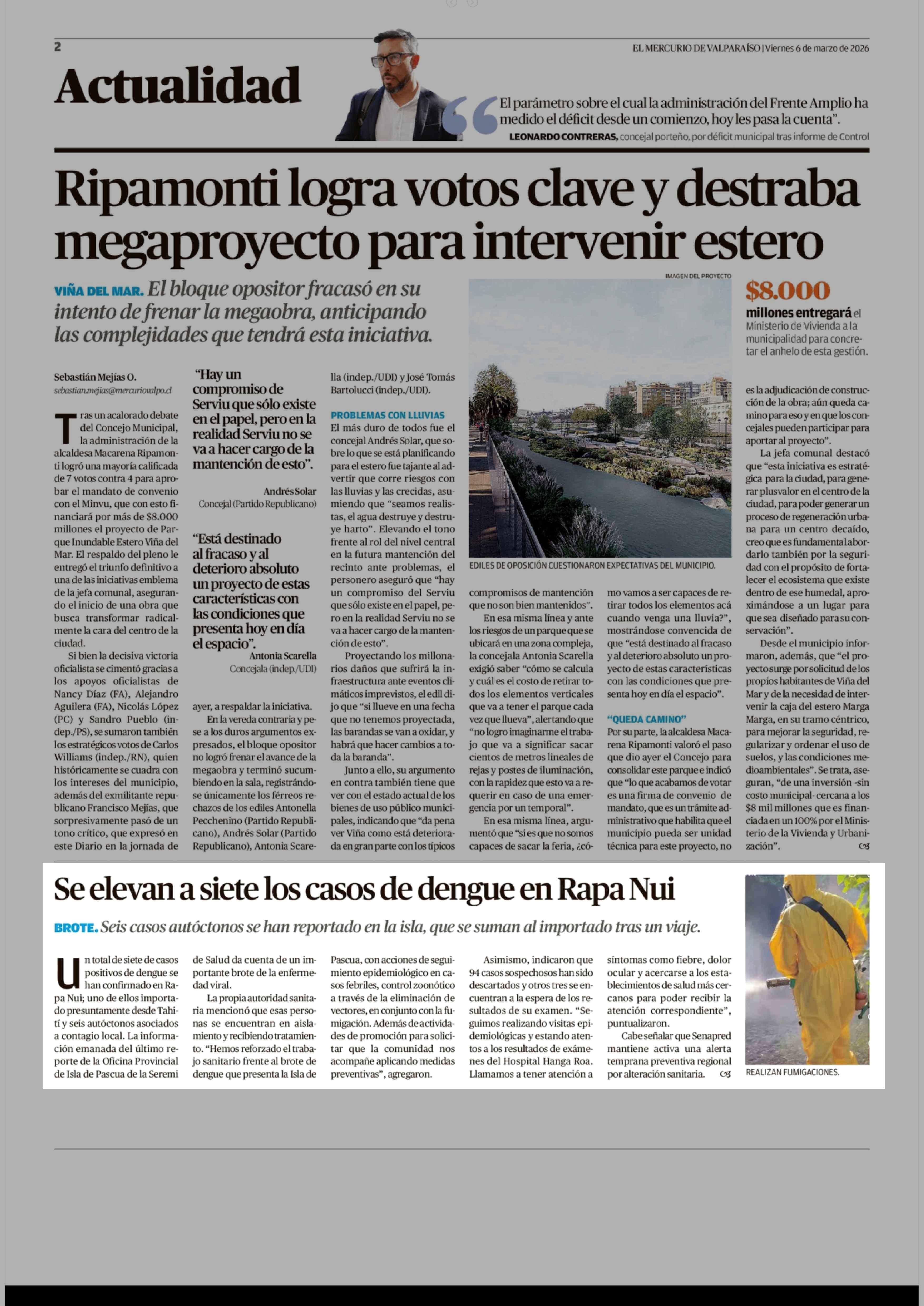 Se elevan a siete los casos de dengue en Rapa Nui 06-03-2026 El Mercurio de Valparaíso |