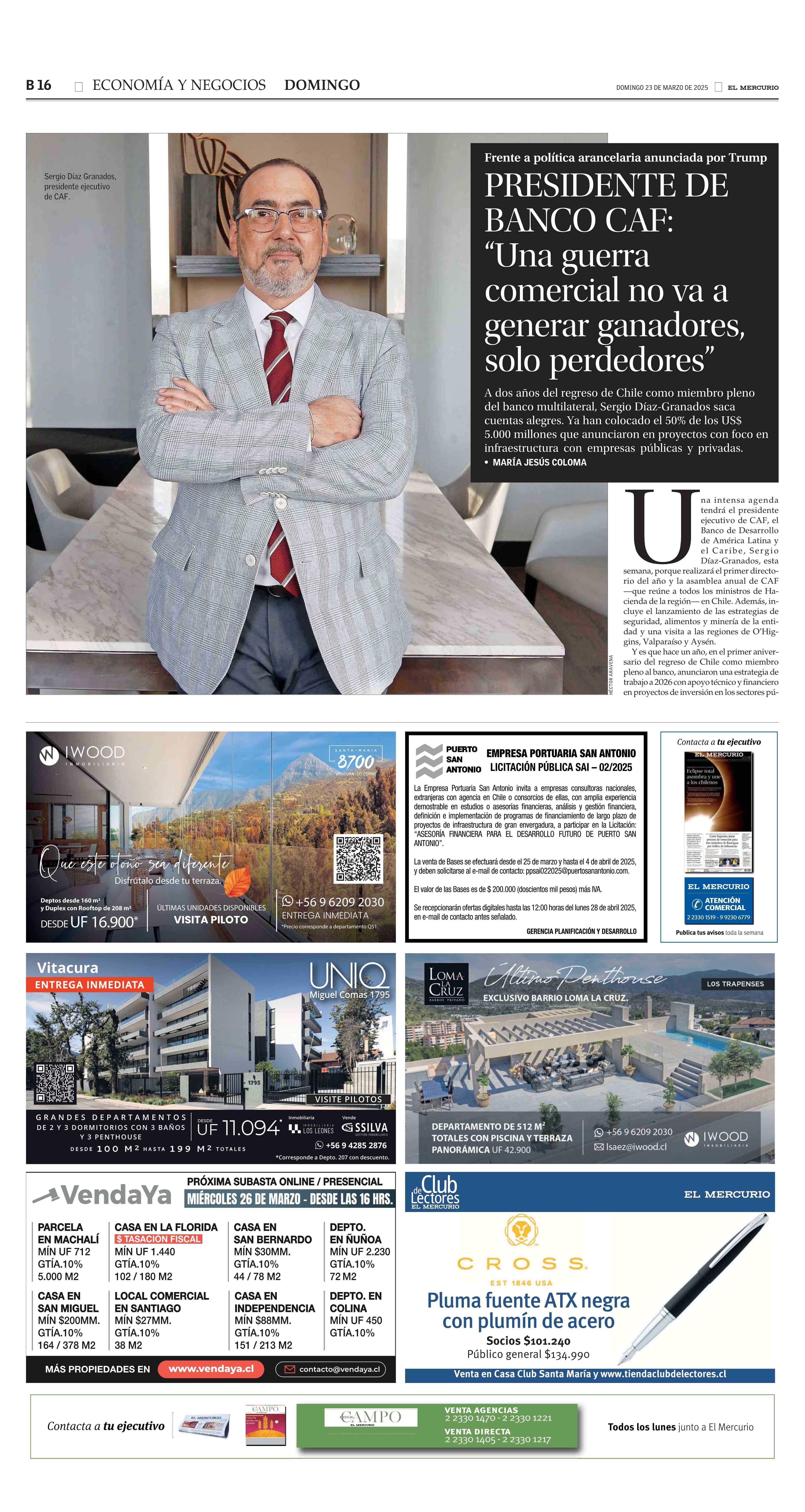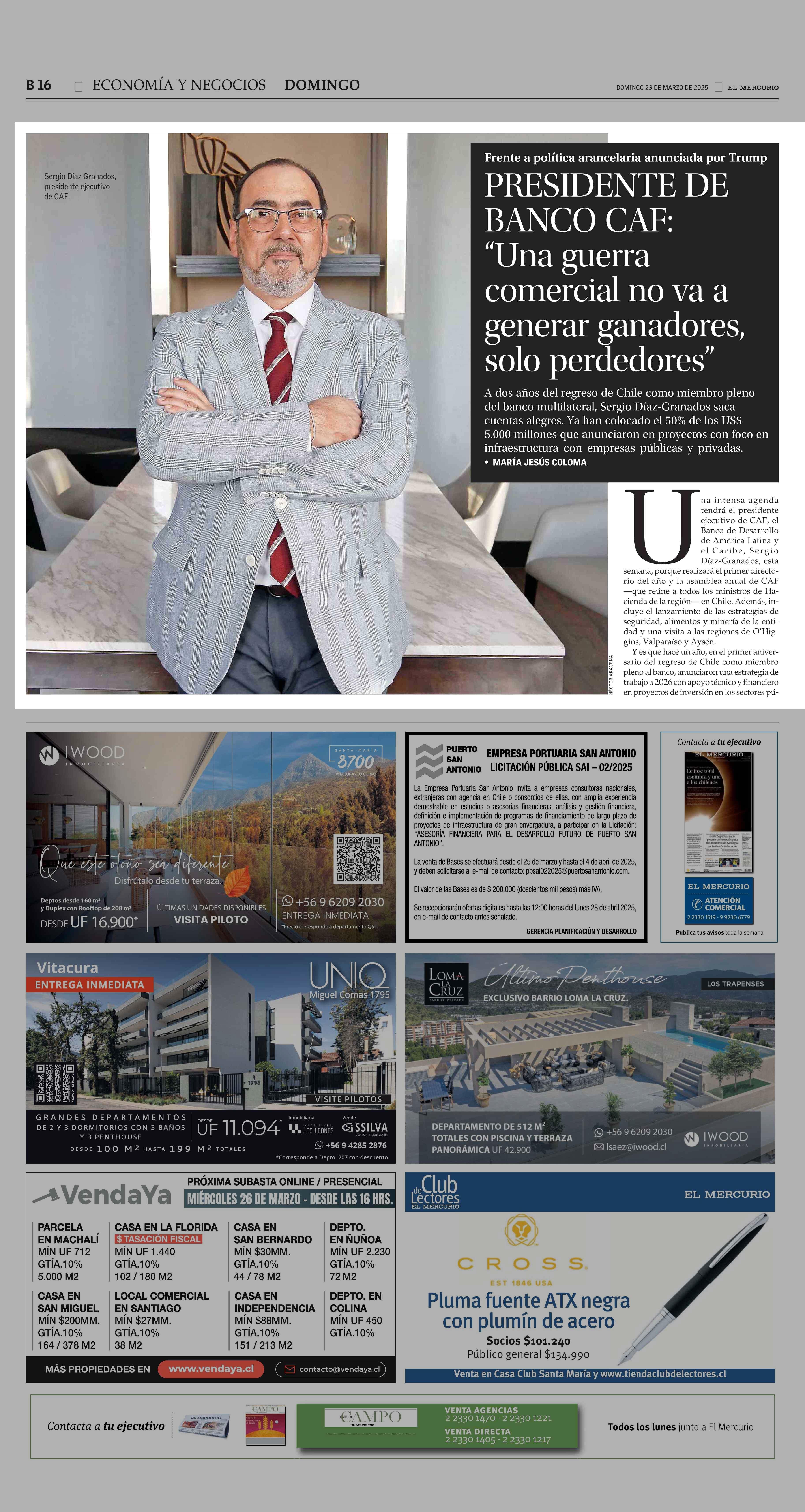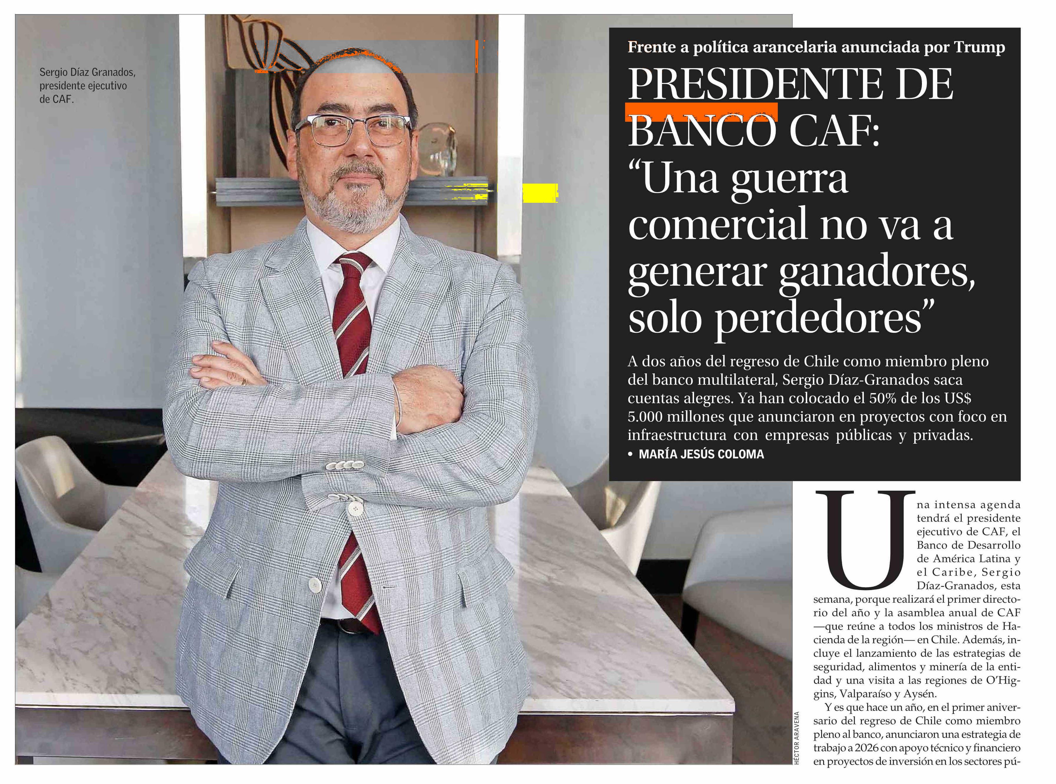 PRESIDENTE DE BANCO CAF: “Una guerra comercial no va a generar ganadores, solo perdedores” 23-03-2025 El Mercurio |