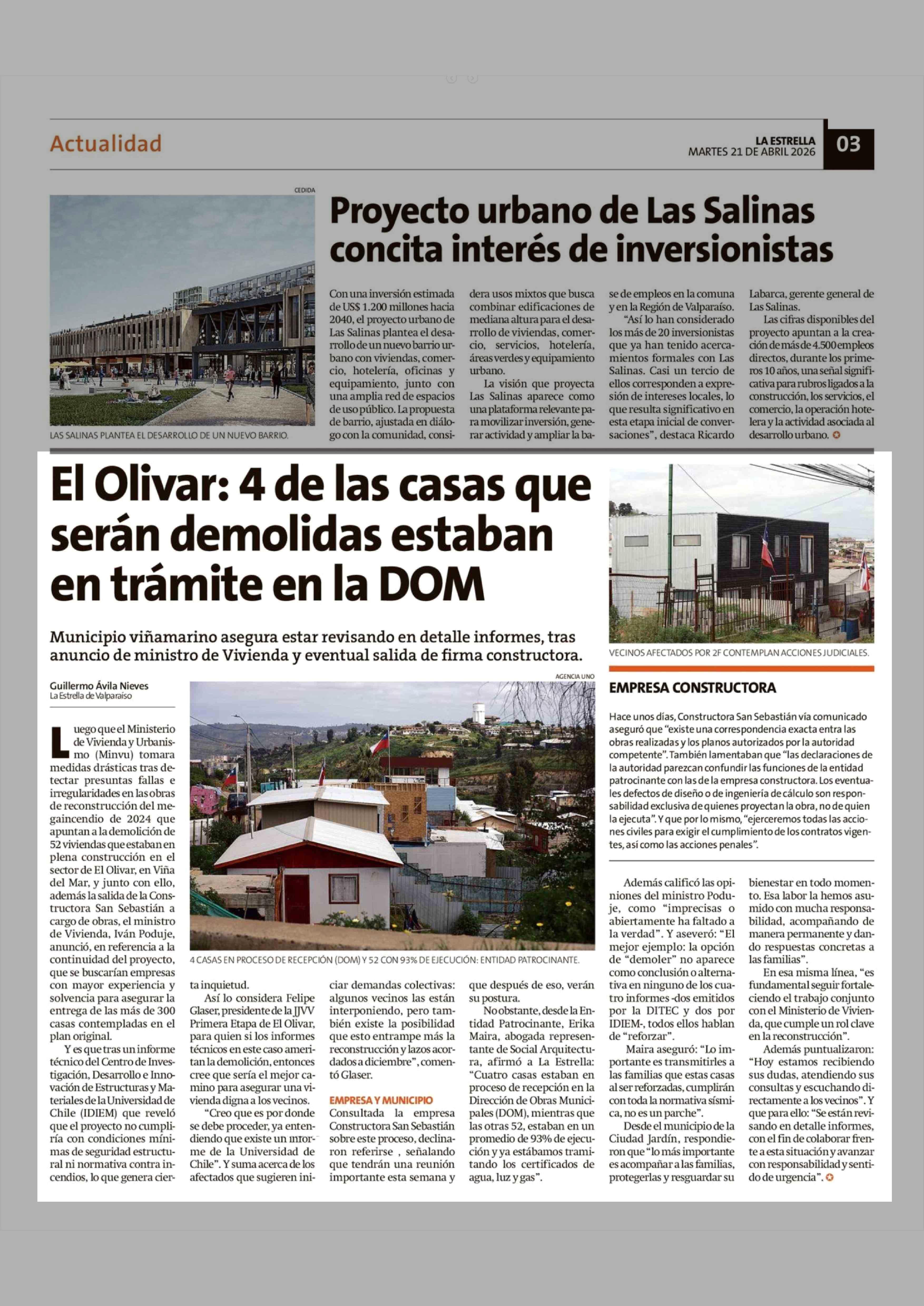 El Olivar: 4 de las casas que serán demolidas estaban en trámite en la DOM 21-04-2026 La Estrella de Valparaíso |