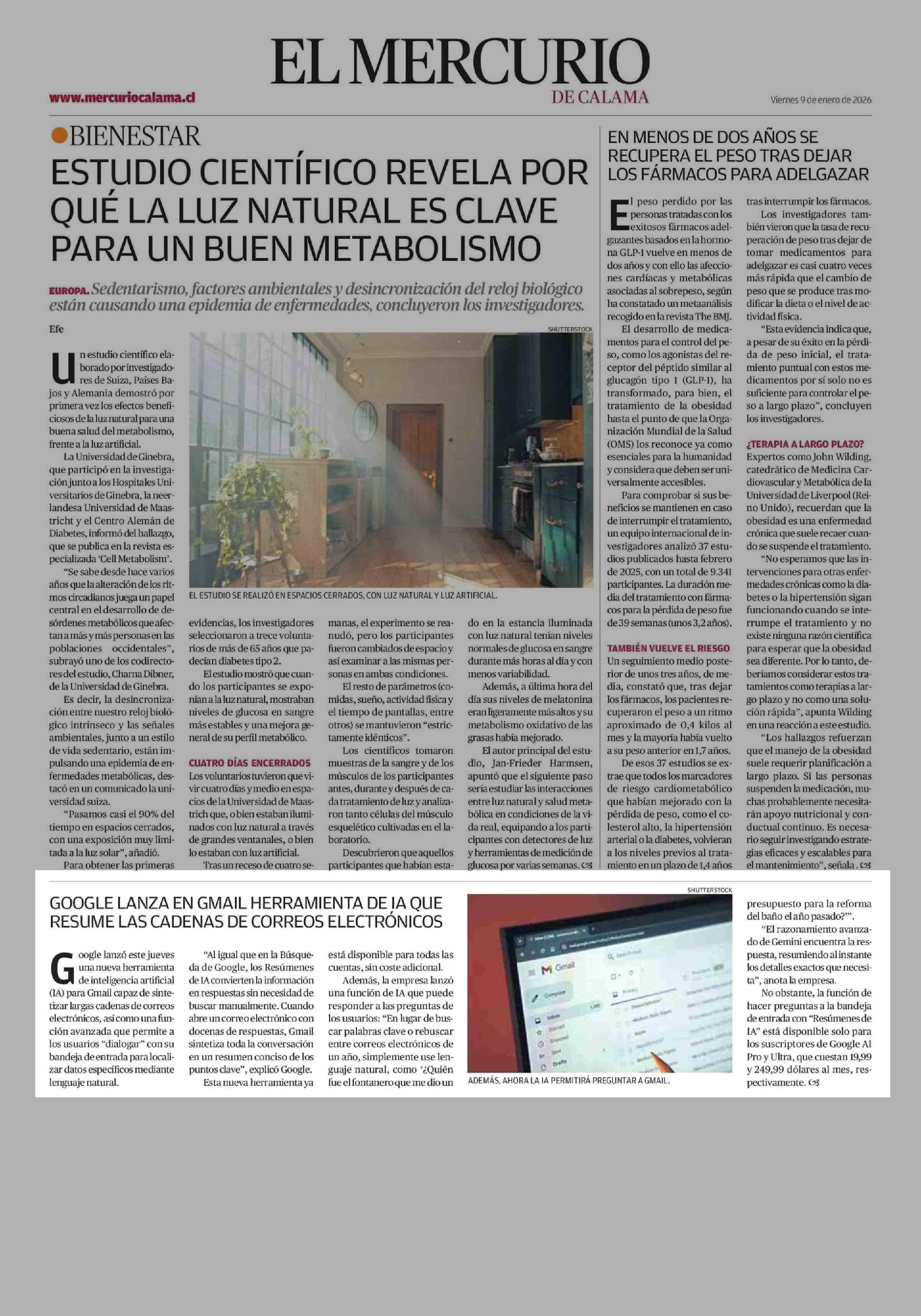 GOOGLE LANZA EN GMAIL HERRAMIENTA DE IA QUE RESUME LAS CADENAS DE CORREOS ELECTRÓNICOS 09-01-2026 El Mercurio de Calama |