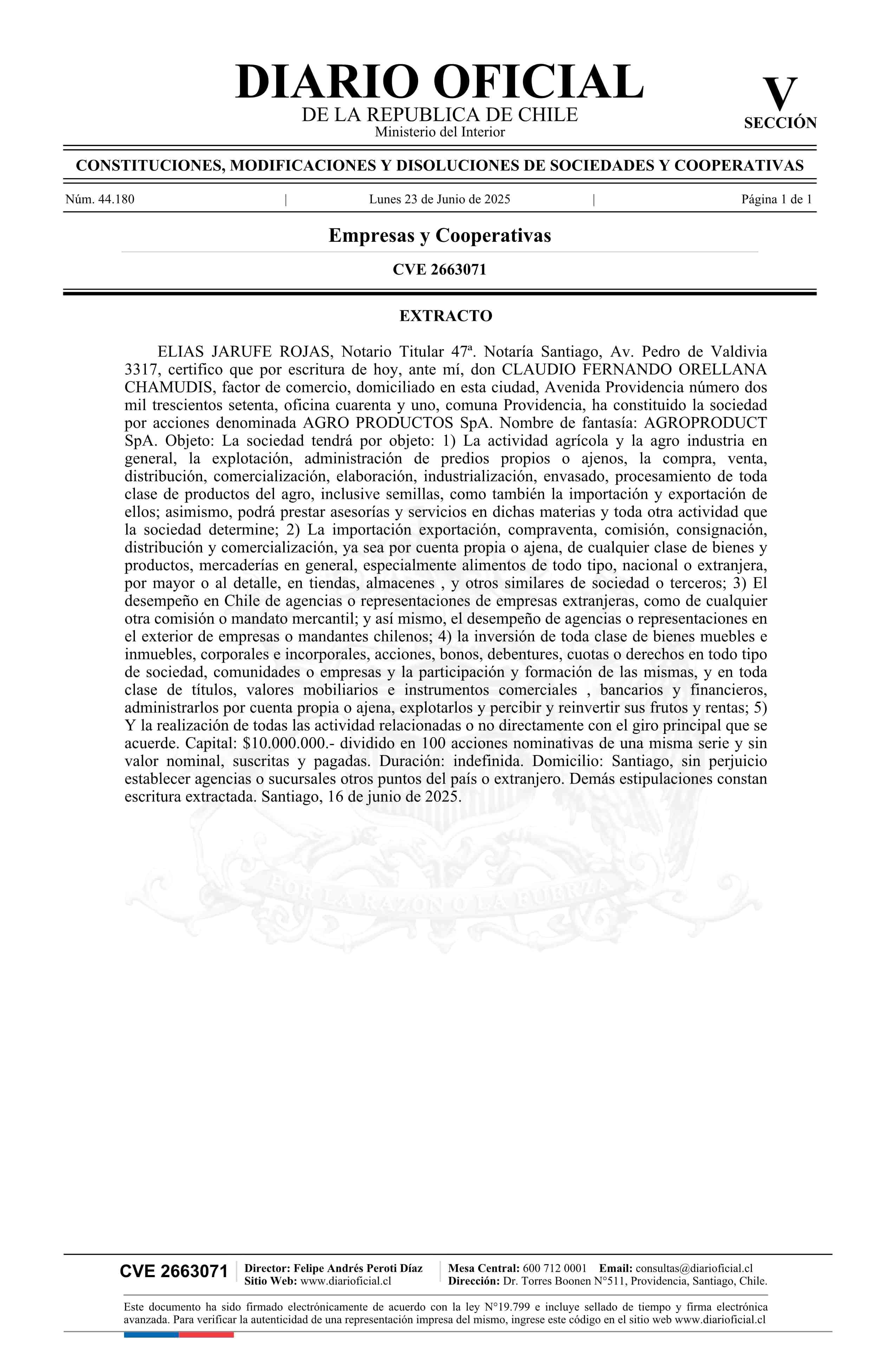 AGRO PRODUCTOS SpA 23-06-2025 Diario Oficial Edición Electrónica |