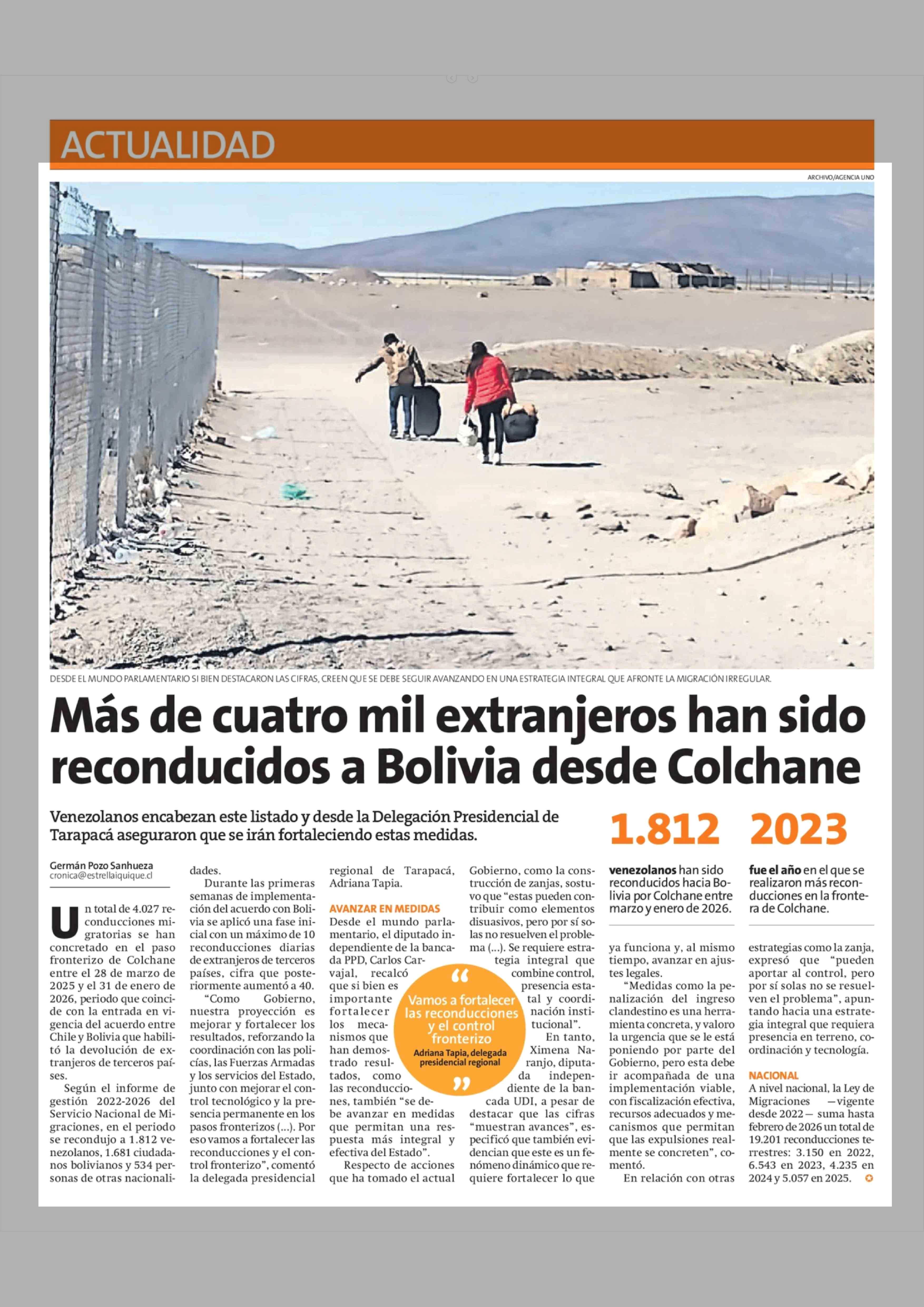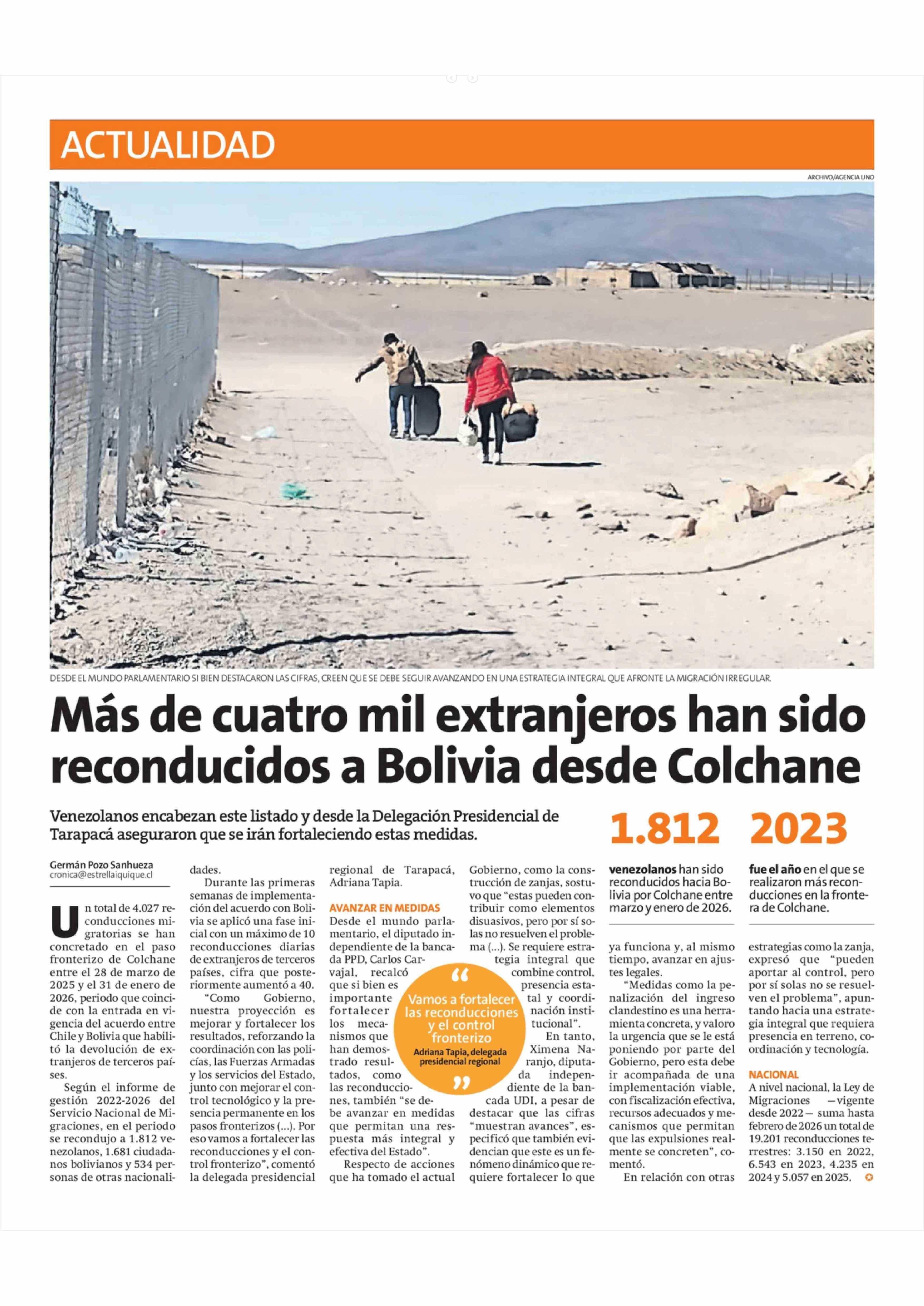 Más de cuatro mil extranjeros han sido reconducidos a Bolivia desde Colchane 24-03-2026 La Estrella de Iquique |