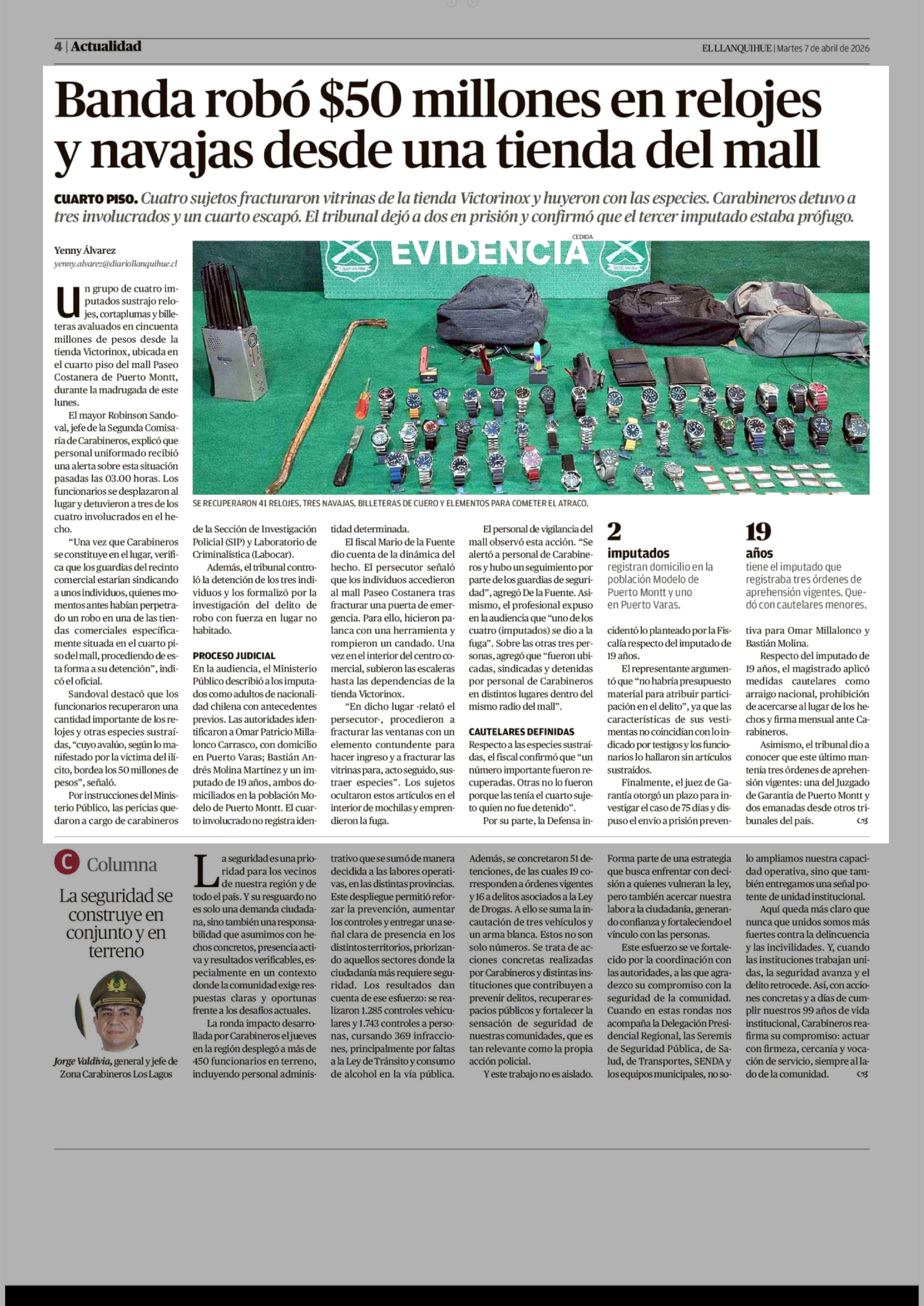 Banda robó $50 millones en relojes y navajas desde una tienda del mall 07-04-2026 El Llanquihue |