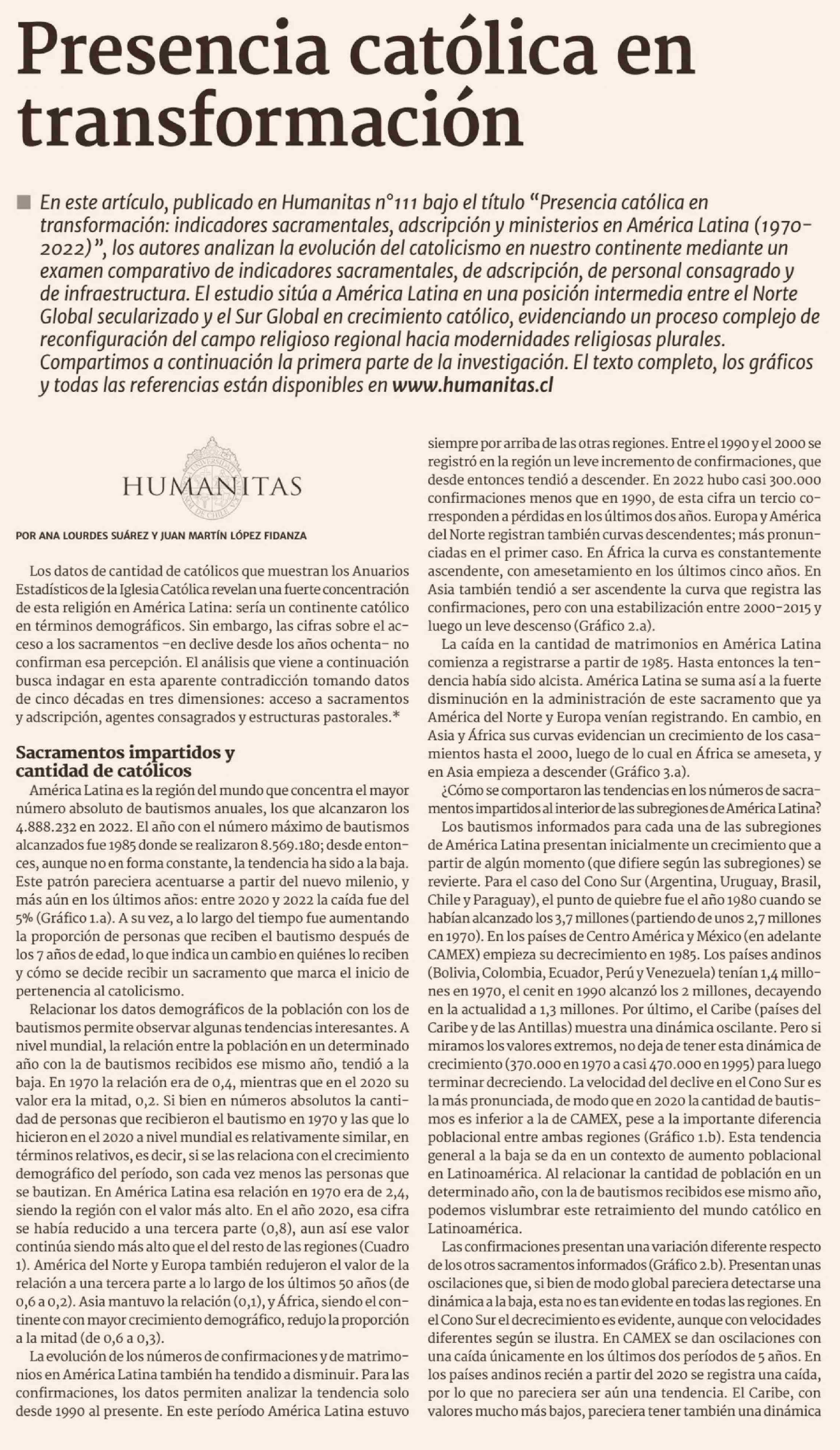 Presencia católica en transformación 13-02-2026 Diario Financiero |