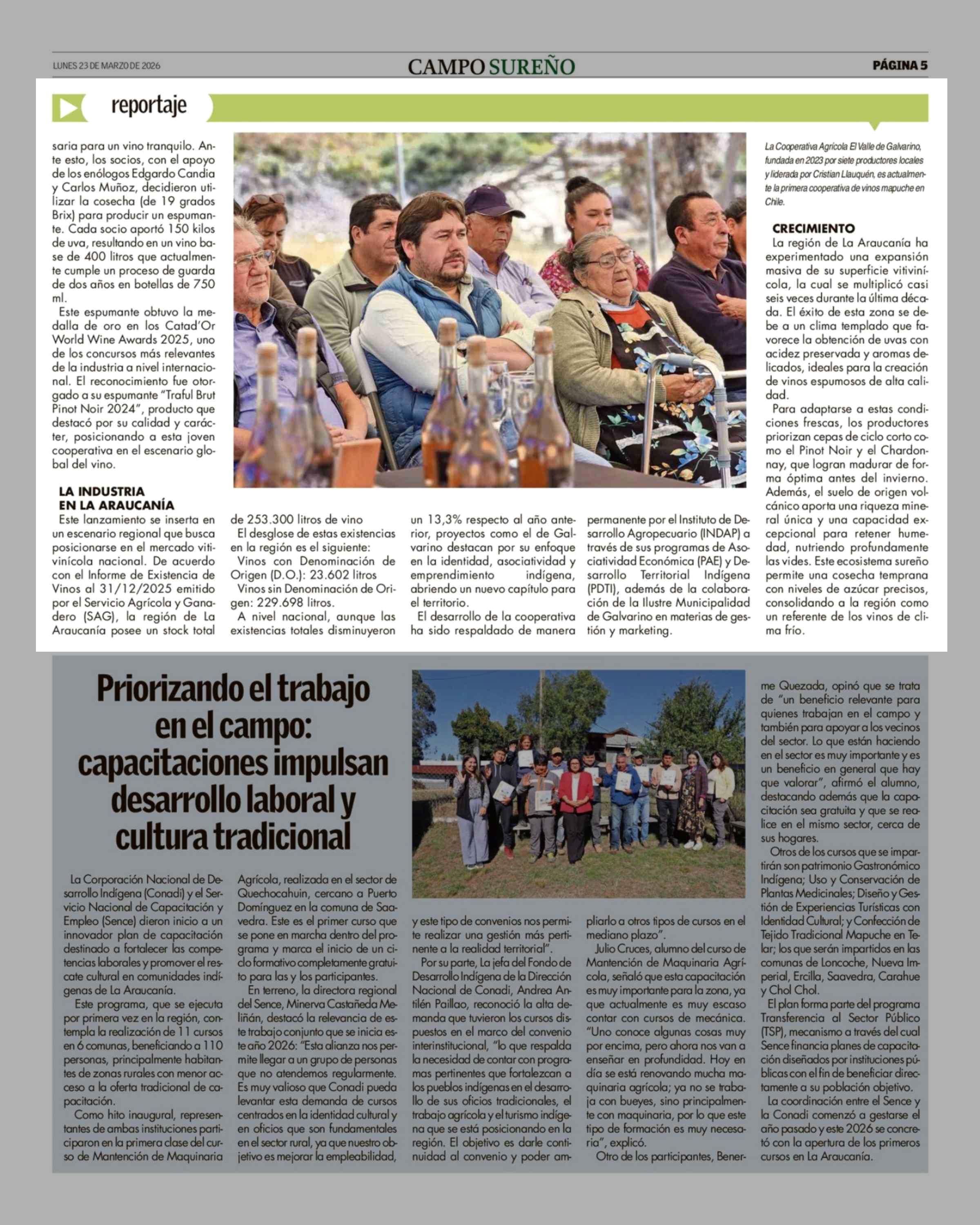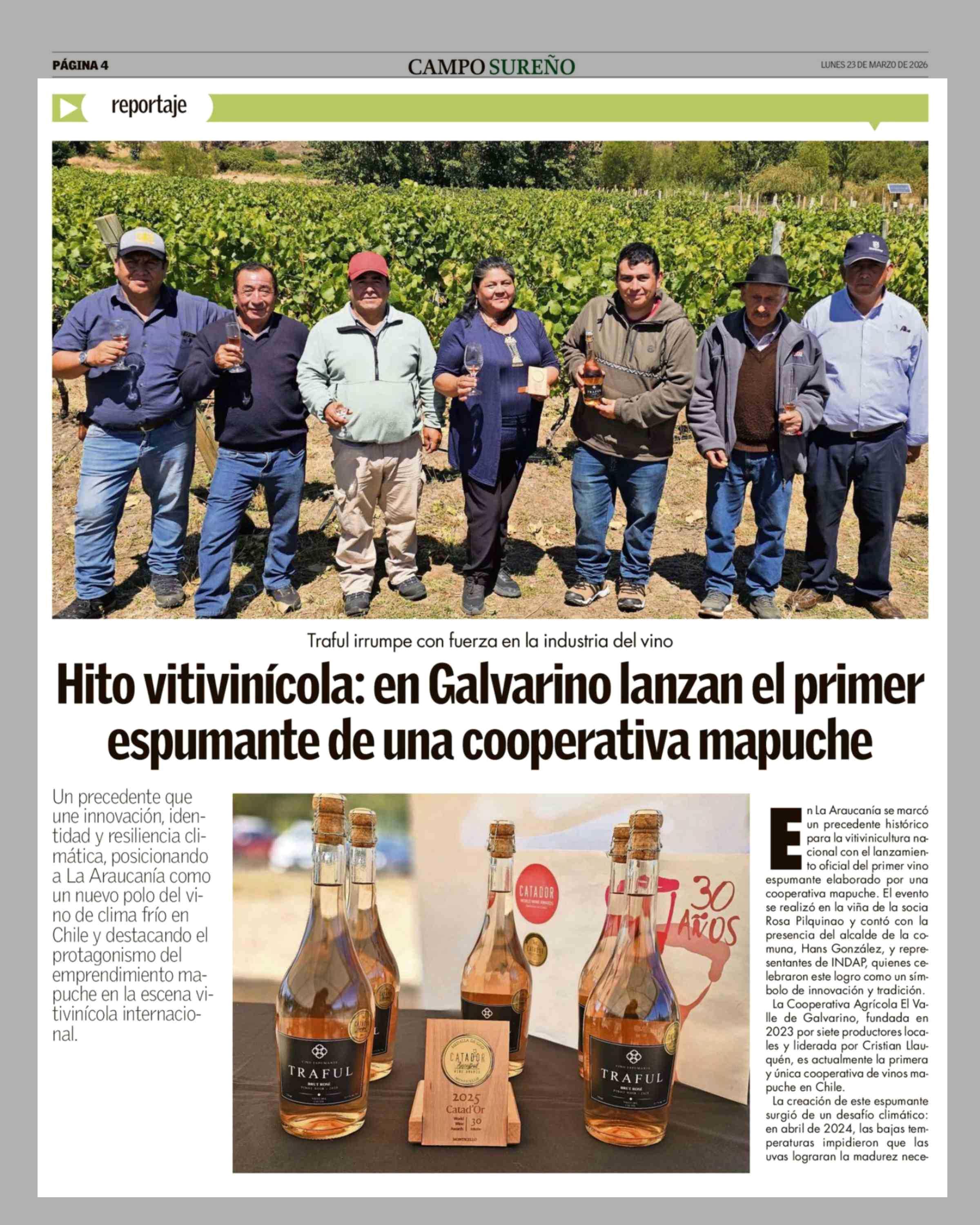 Hito vitivinícola: en Galvarino lanzan el primer espumante de una cooperativa mapuche 23-03-2026 Campo Sureño - Regiones IX, X y XIV |