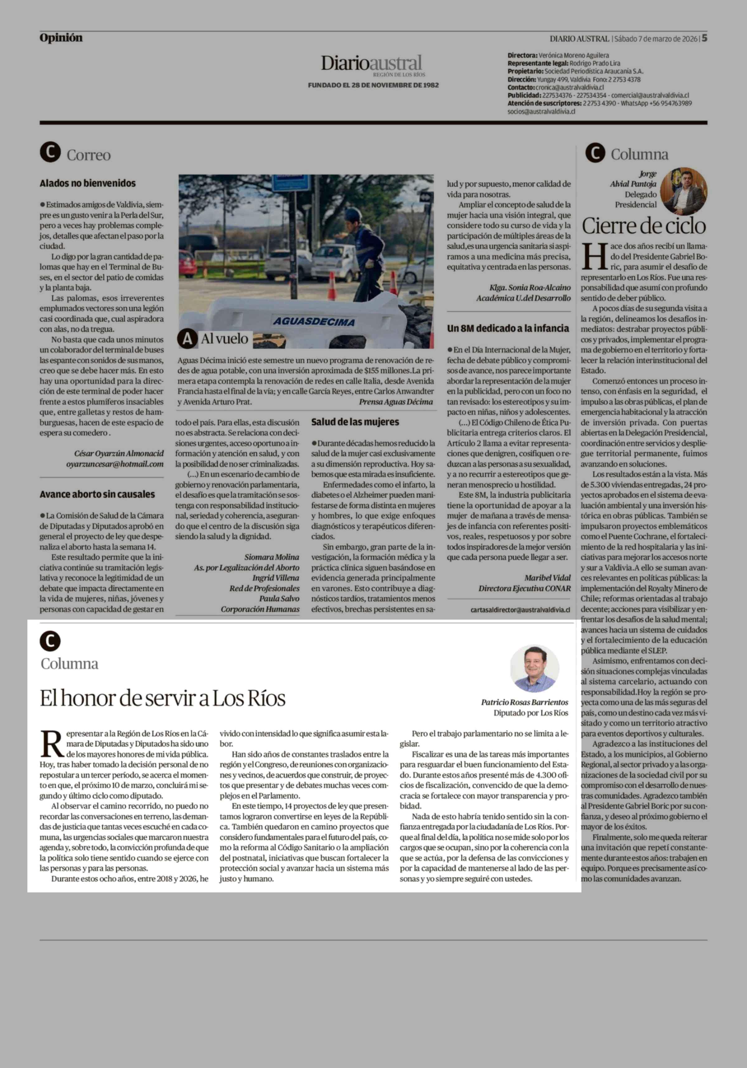 | Fecha: | 07-03-2026 | Sector: | Columnas de Opinión | Región: | Región de Los Ríos |