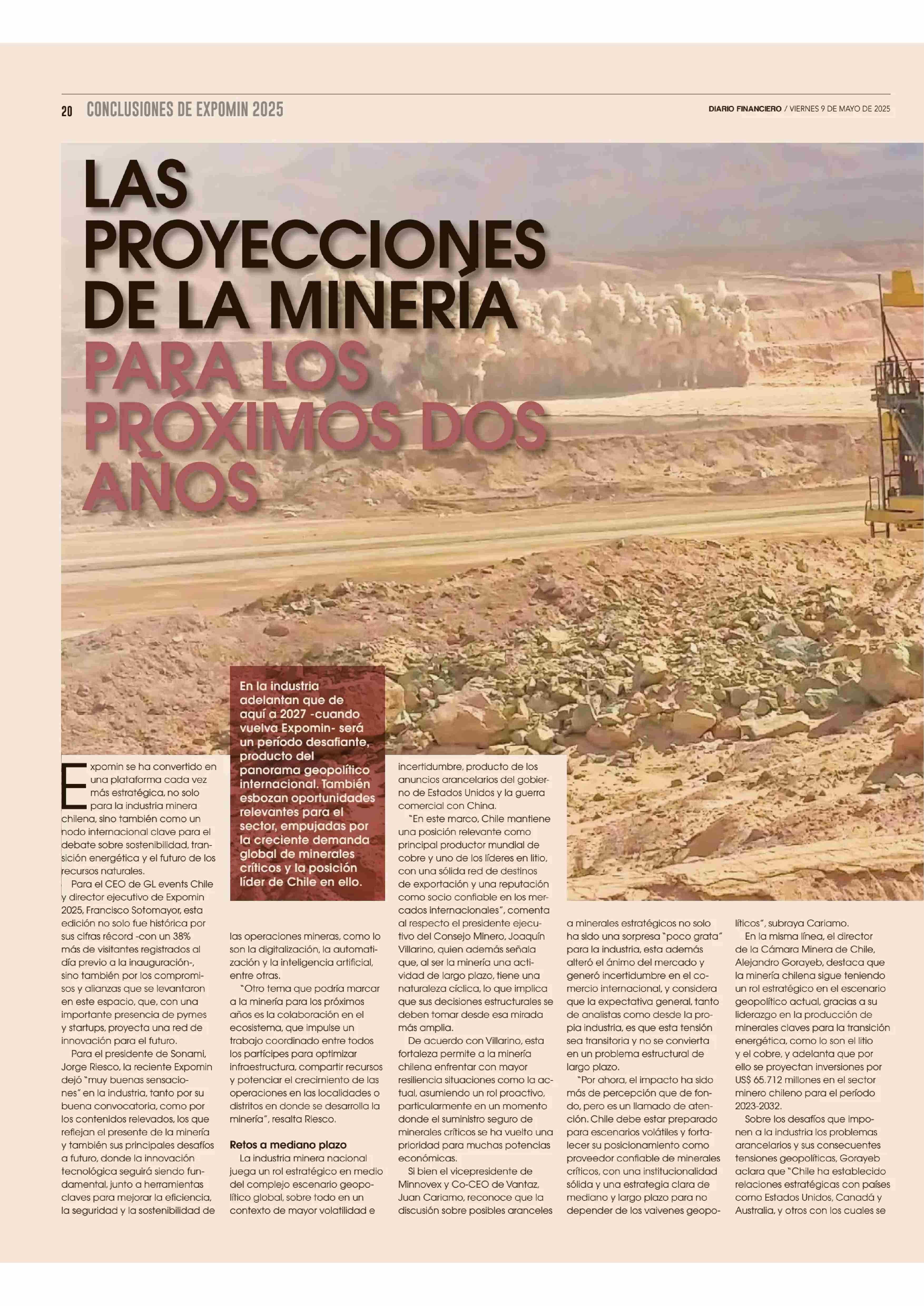 LAS PROYECCIONES DE LA MINERÍA PARA LOS PROXIMOS DOS AÑOS 09-05-2025 Diario Financiero |