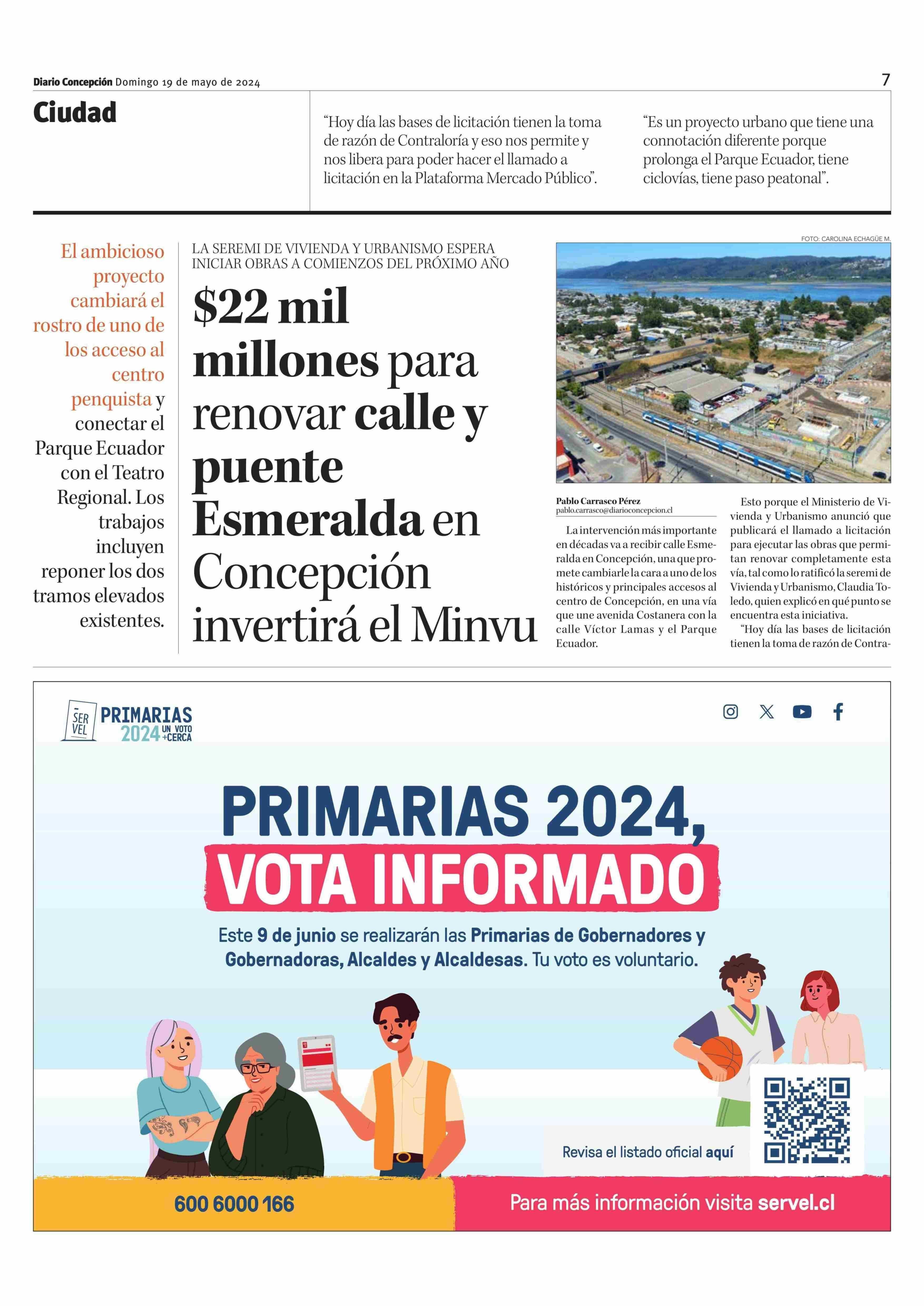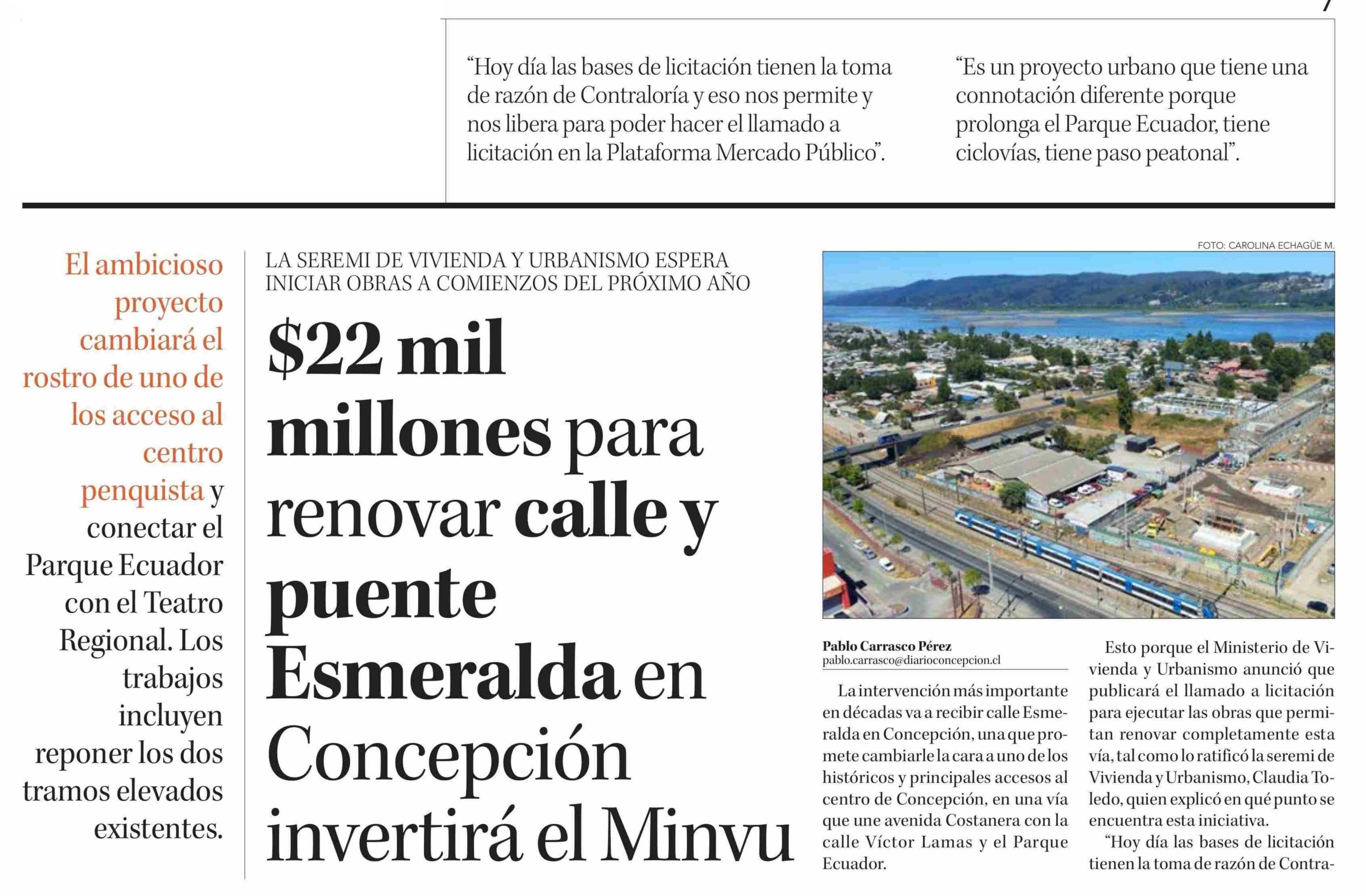 $22 mil millones para renovar calle y puente Esmeralda en Concepción invertirá el Minvu 19-05-2024 Diario Concepción |