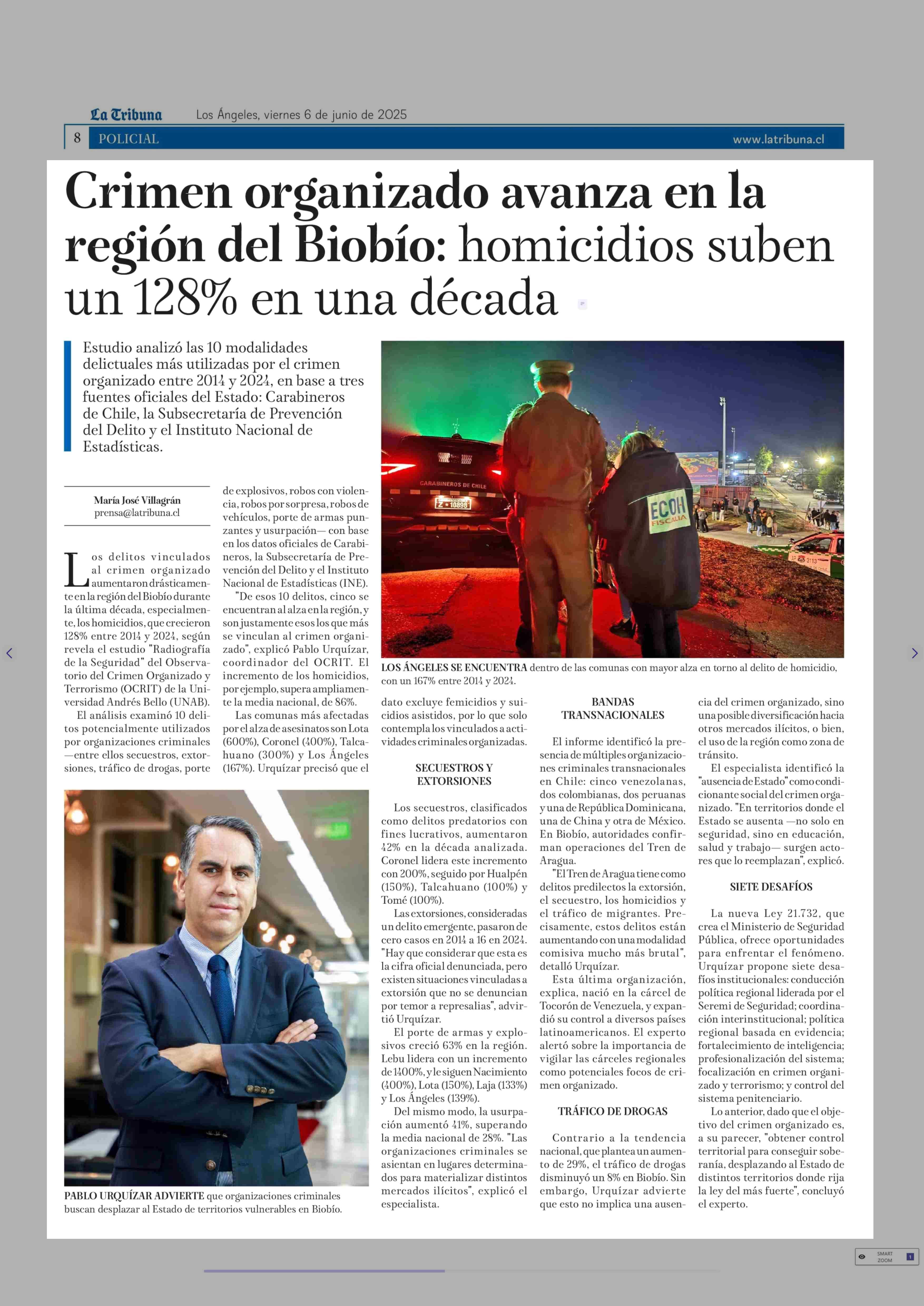 Título: Crimen organizado avanza en la región del Biobío: homicidios suben un 128% en una década