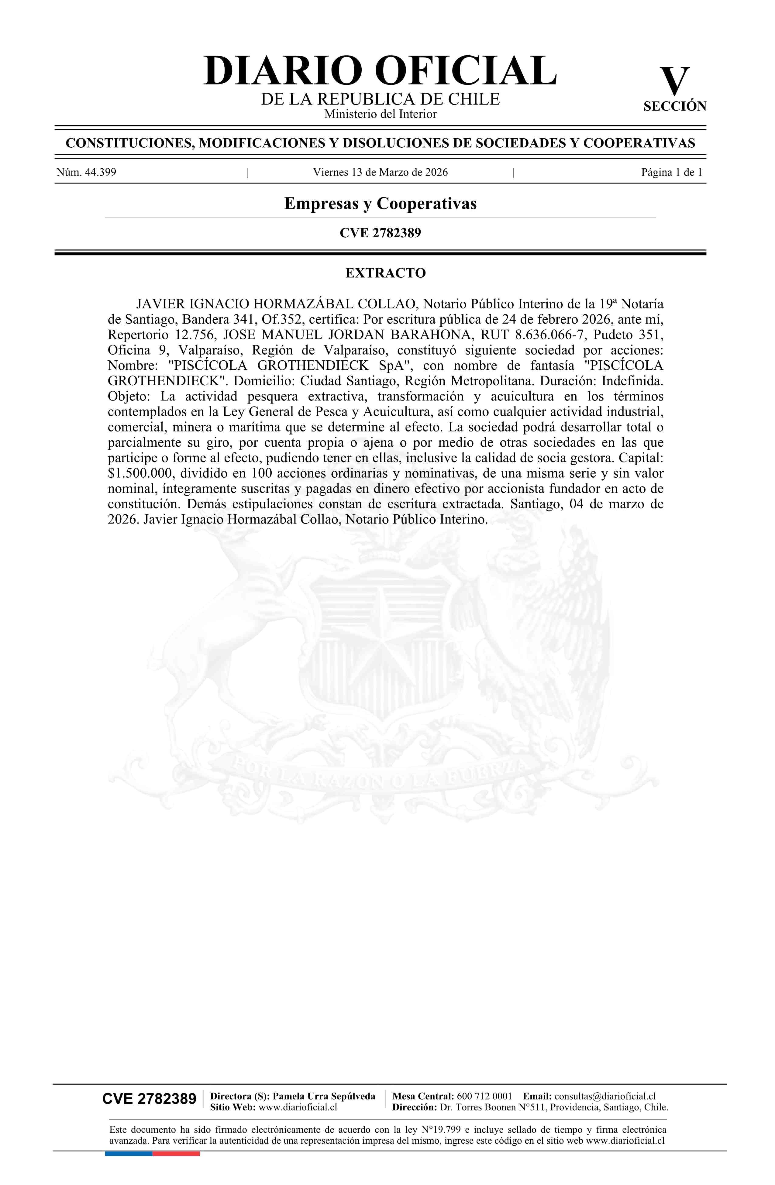 Título: PISCÍCOLA GROTHENDIECK SpA