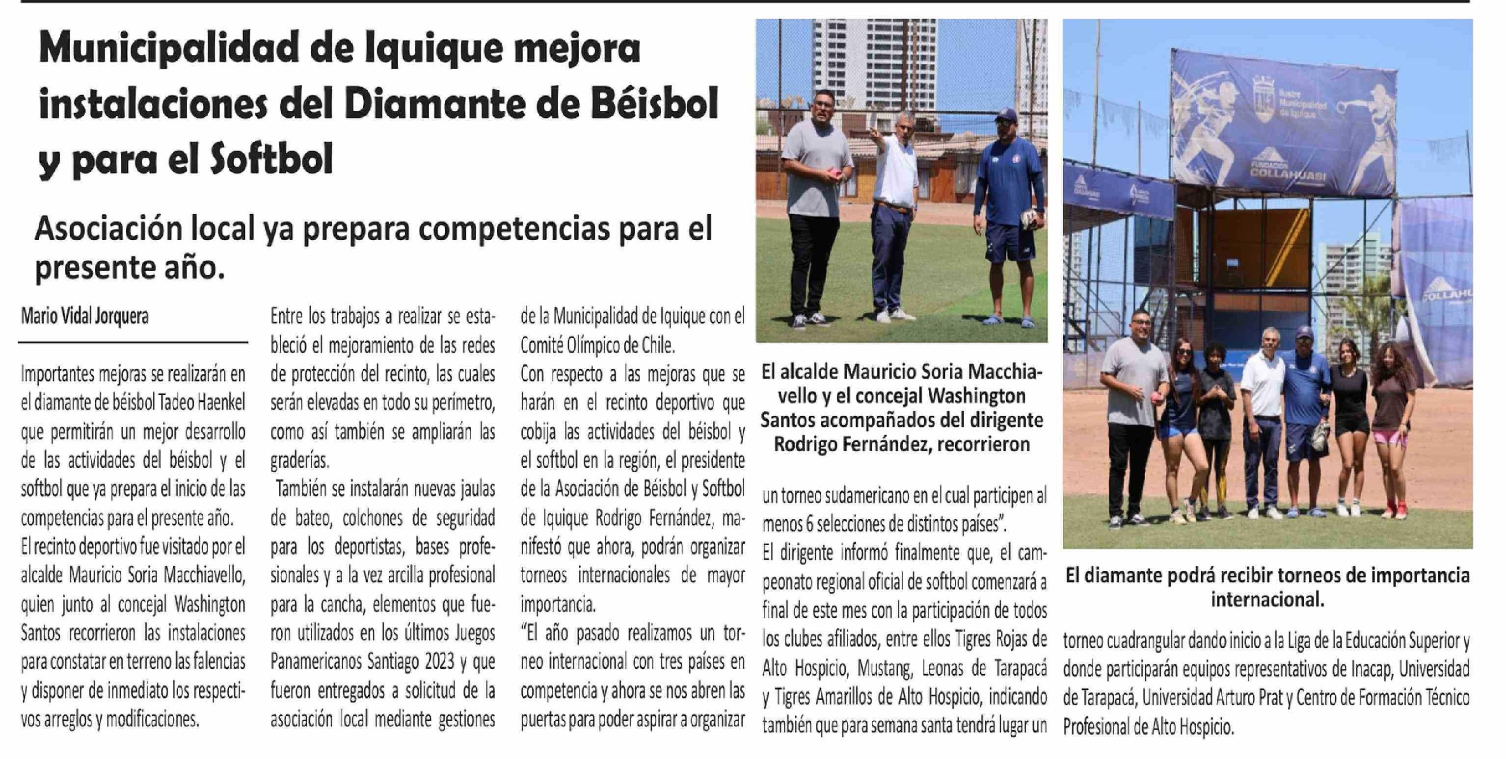 Municipalidad de Iquique mejora instalaciones del Diamante de Béisbol y para el Softbol 10-03-2026 El Longino |