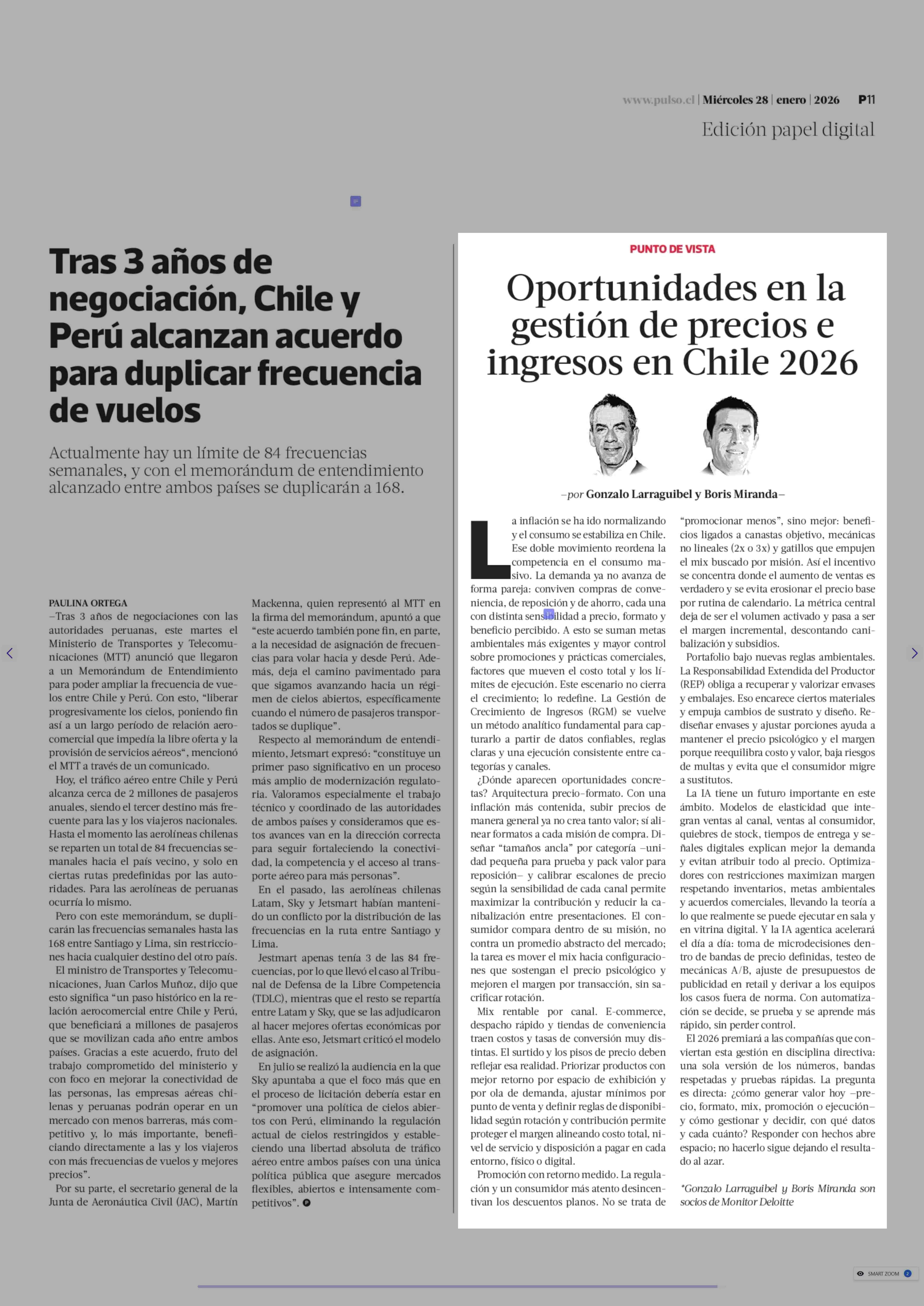 Título: Columnas de Opinión: Oportunidades en la gestión de precios e ingresos en Chile 2026
