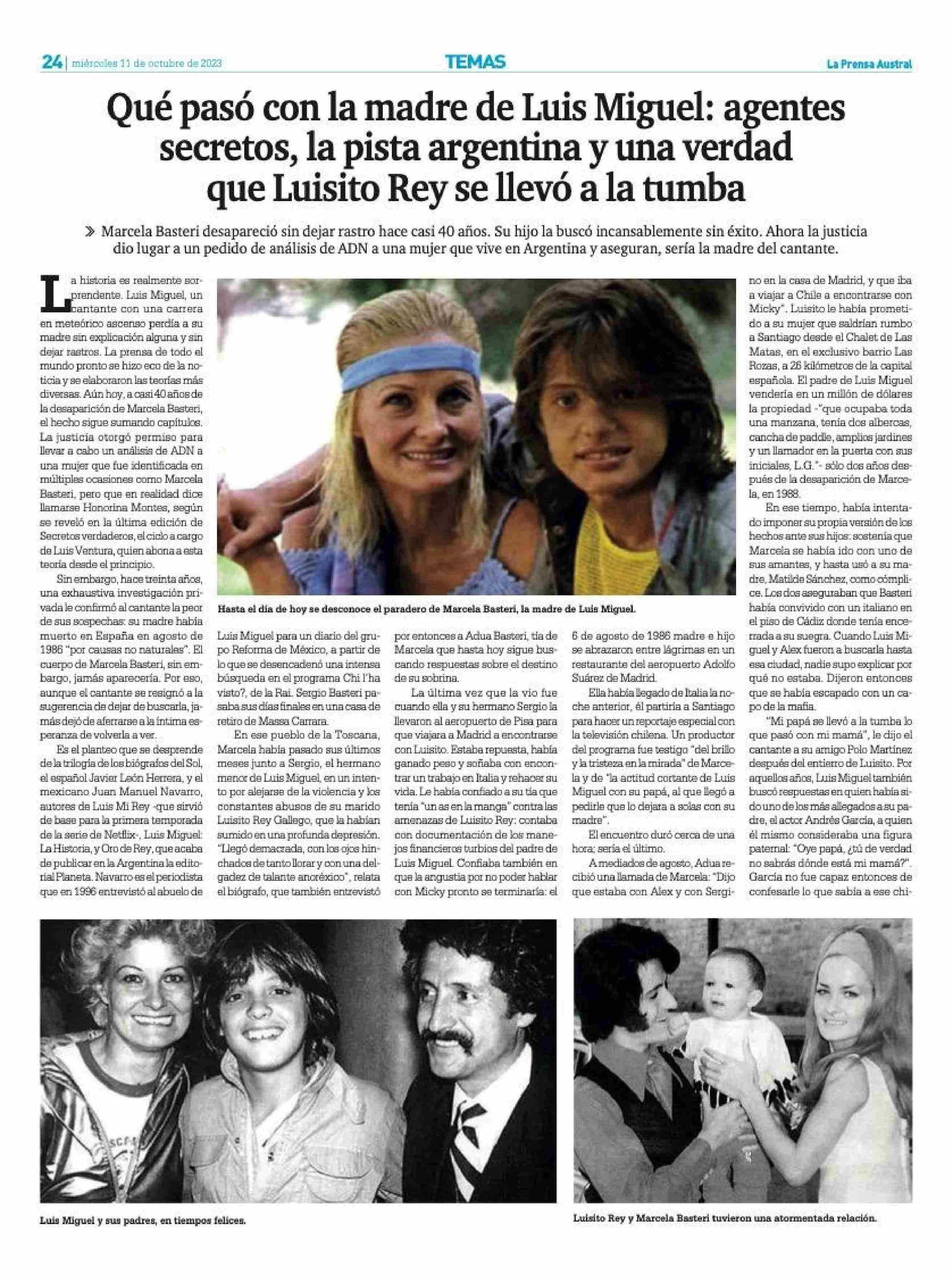 Qué pasó con la madre de Luis Miguel: agentes secretos, la pista argentina y una verdad que Luisito Rey se llevó a la tumba 11-10-2023 La Prensa Austral |