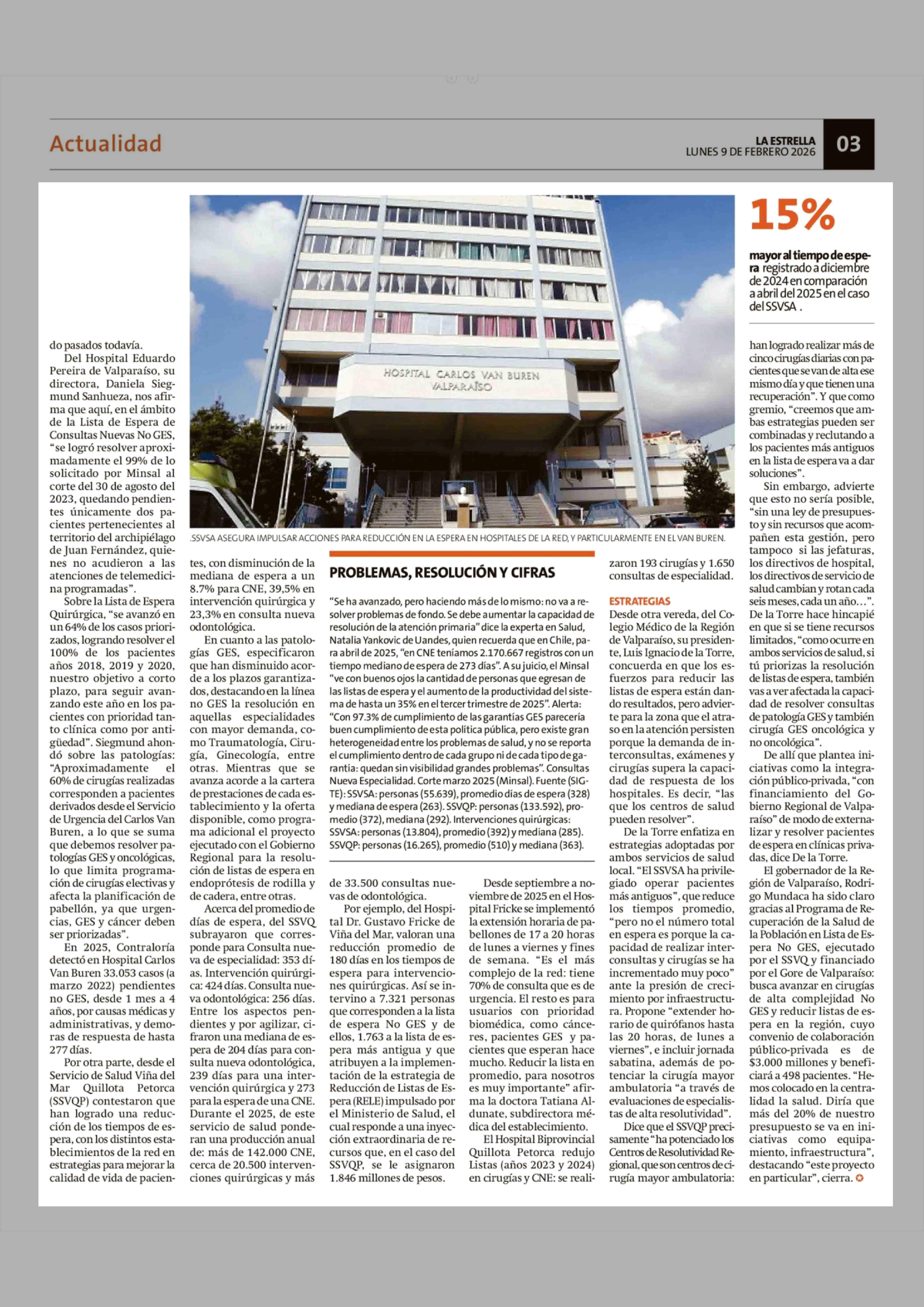 Listas de espera: la deuda que persiste en hospitales de la región 09-02-2026 La Estrella de Valparaíso |