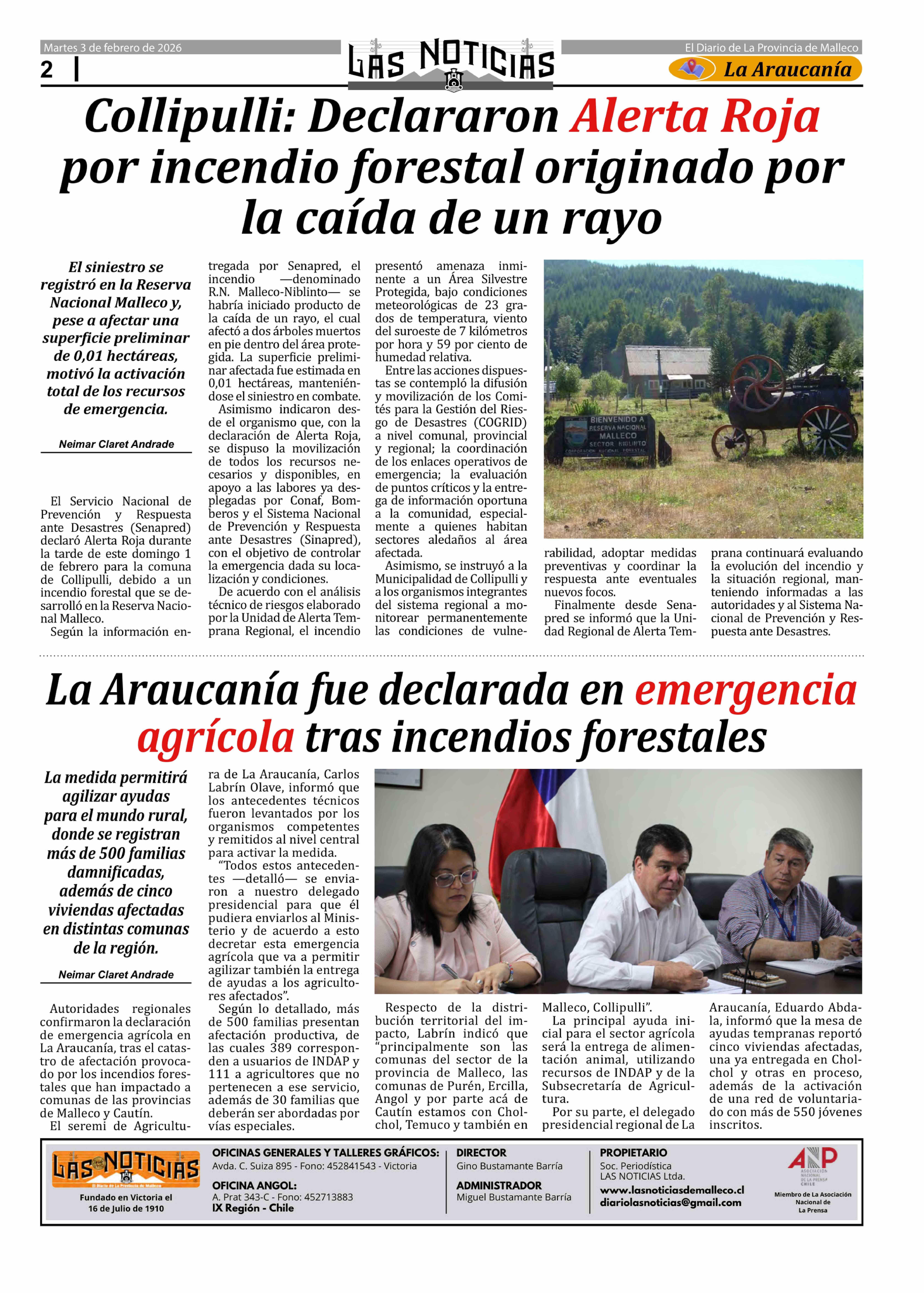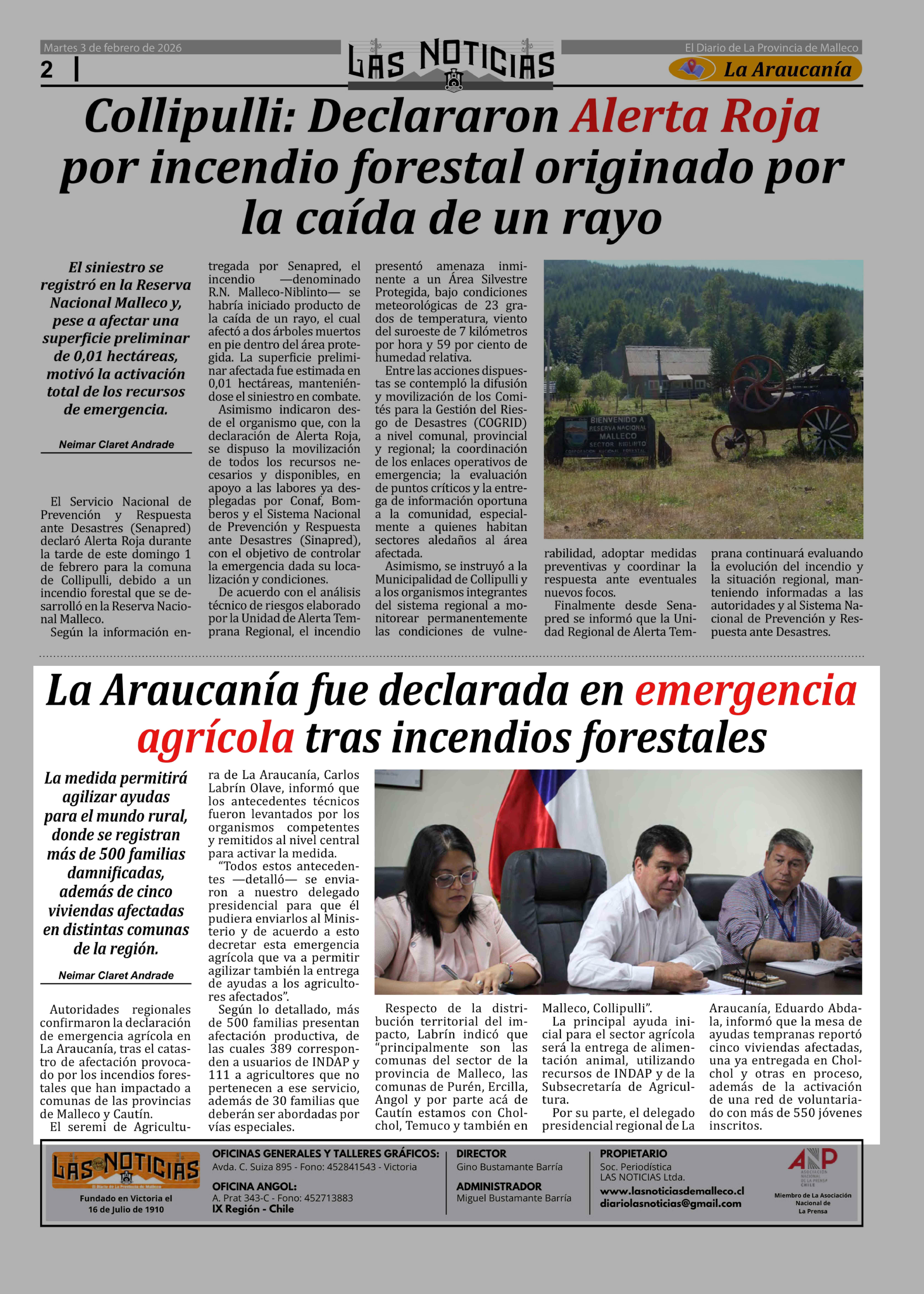 La Araucanía fue declarada en emergencia 03-02-2026 Las Noticias |
