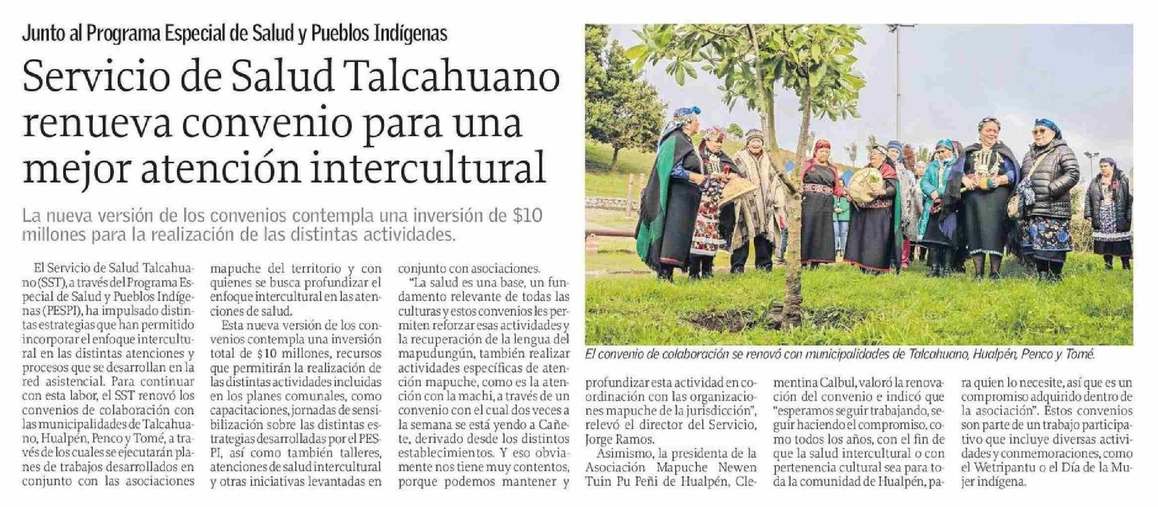 Servicio de Salud Talcahuano renueva convenio para una mejor atención intercultural 25-06-2025 El Sur |