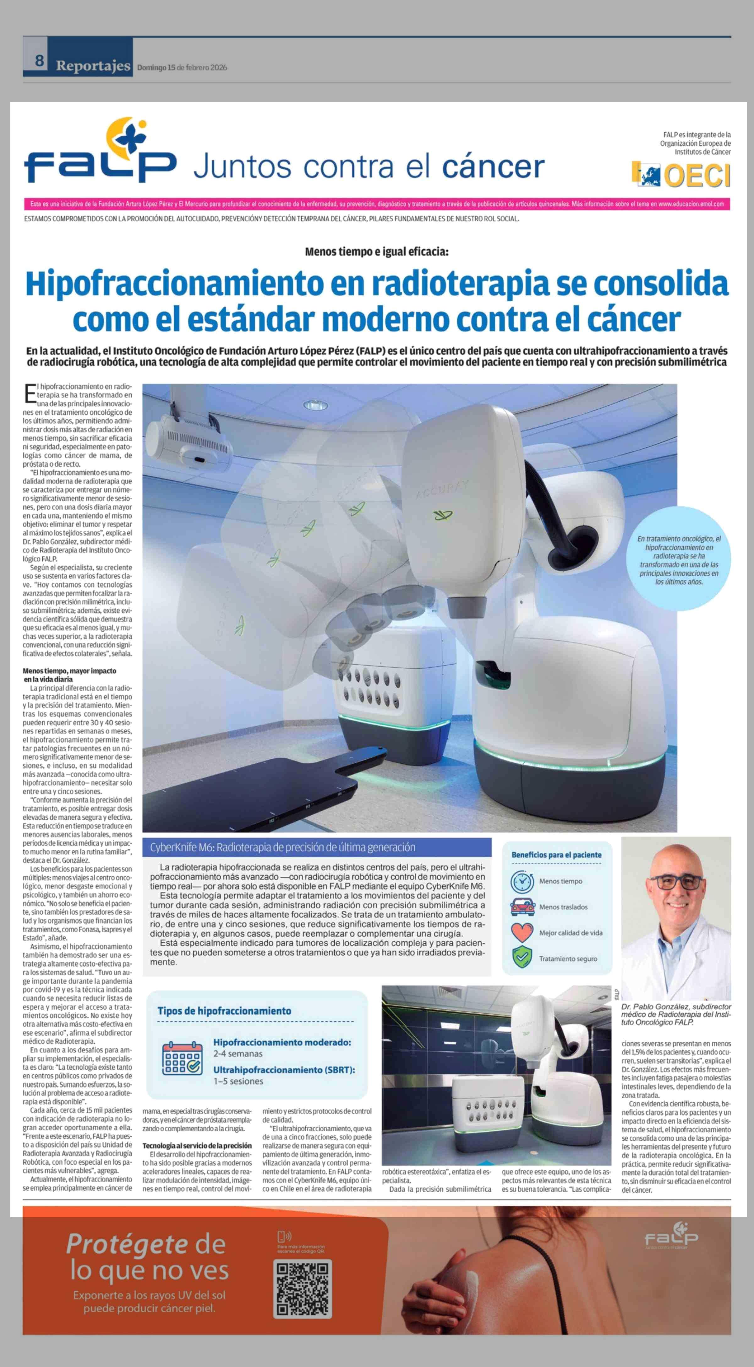 Hipofraccionamiento en radioterapia se consolida como el estándar moderno contra el cáncer 15-02-2026 El Sur |