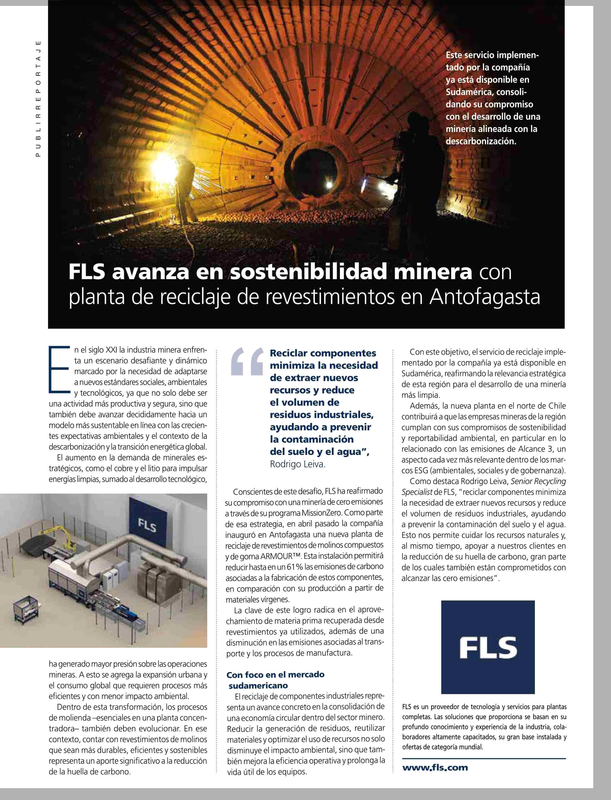 Título: FLS avanza en sostenibilidad minera con planta de reciclaje de revestimientos en Antofagasta