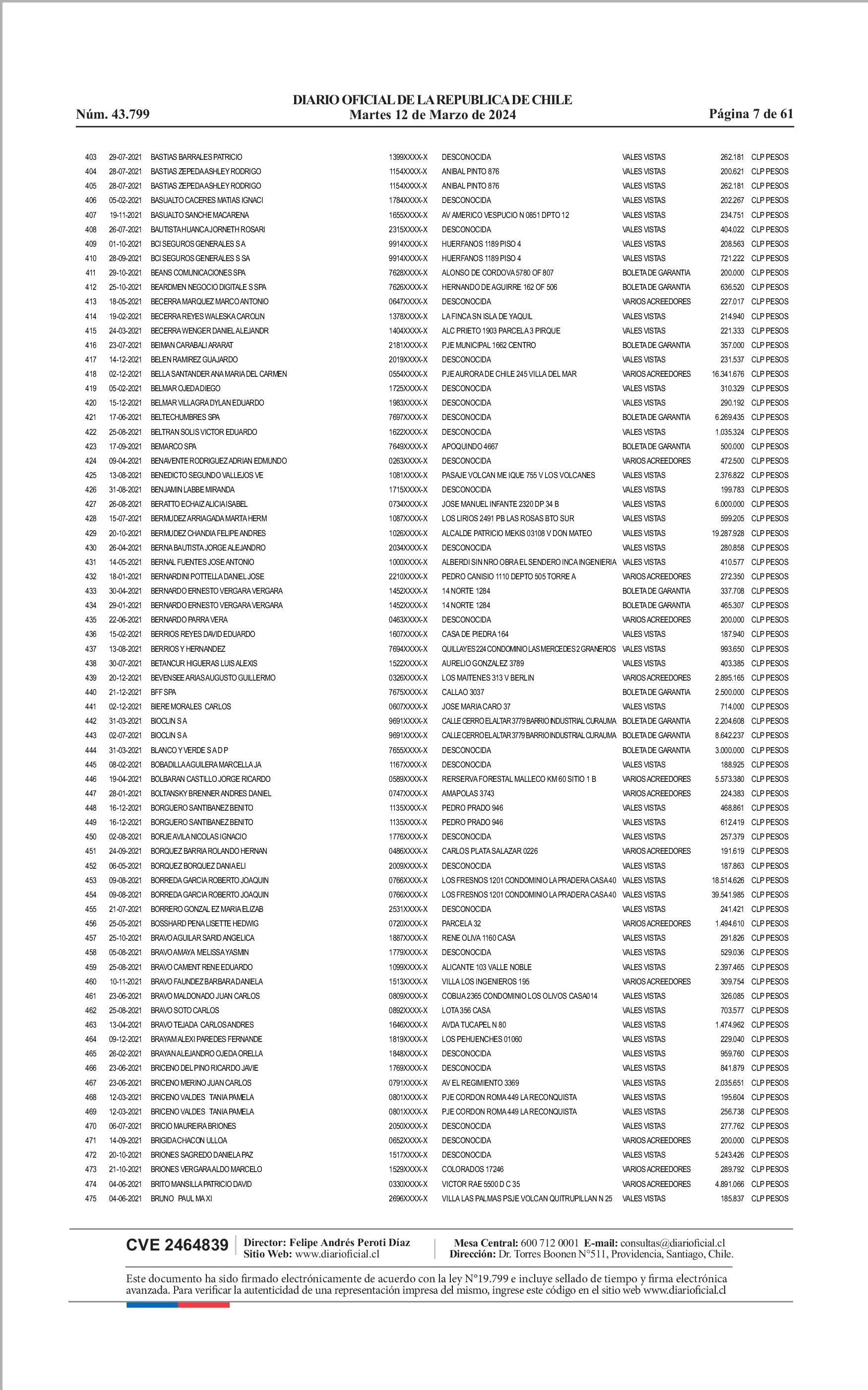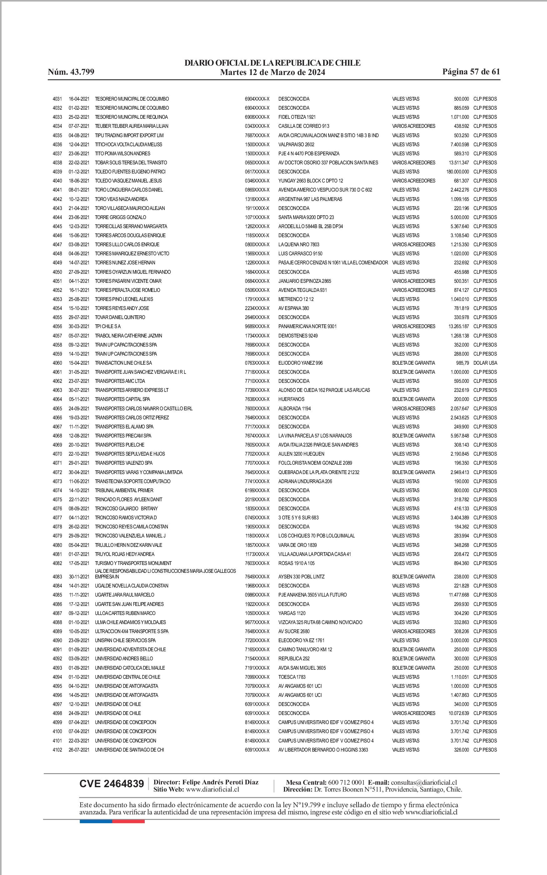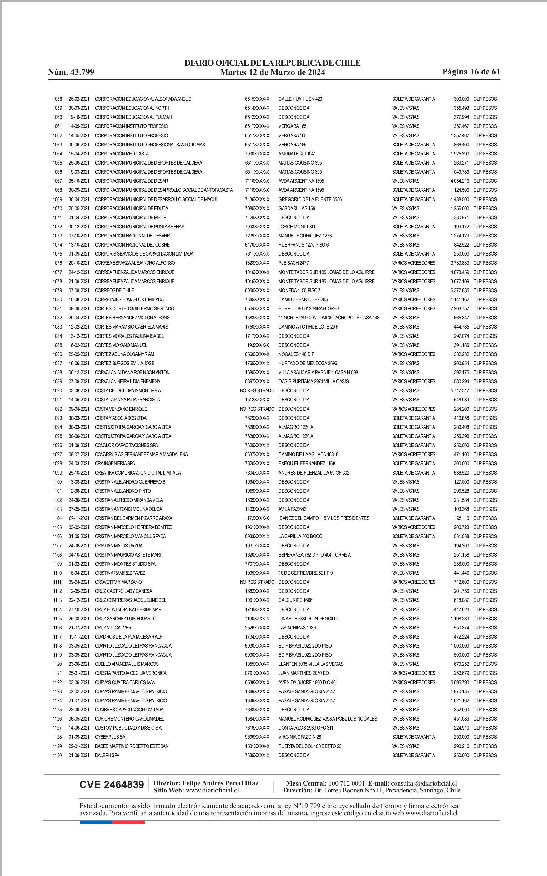 | Fuente: | Diario Oficial Edición Electrónica (Diario Oficial - Otras Secciones (Stgo - Chile)) | Página(s): | 1-61 |
