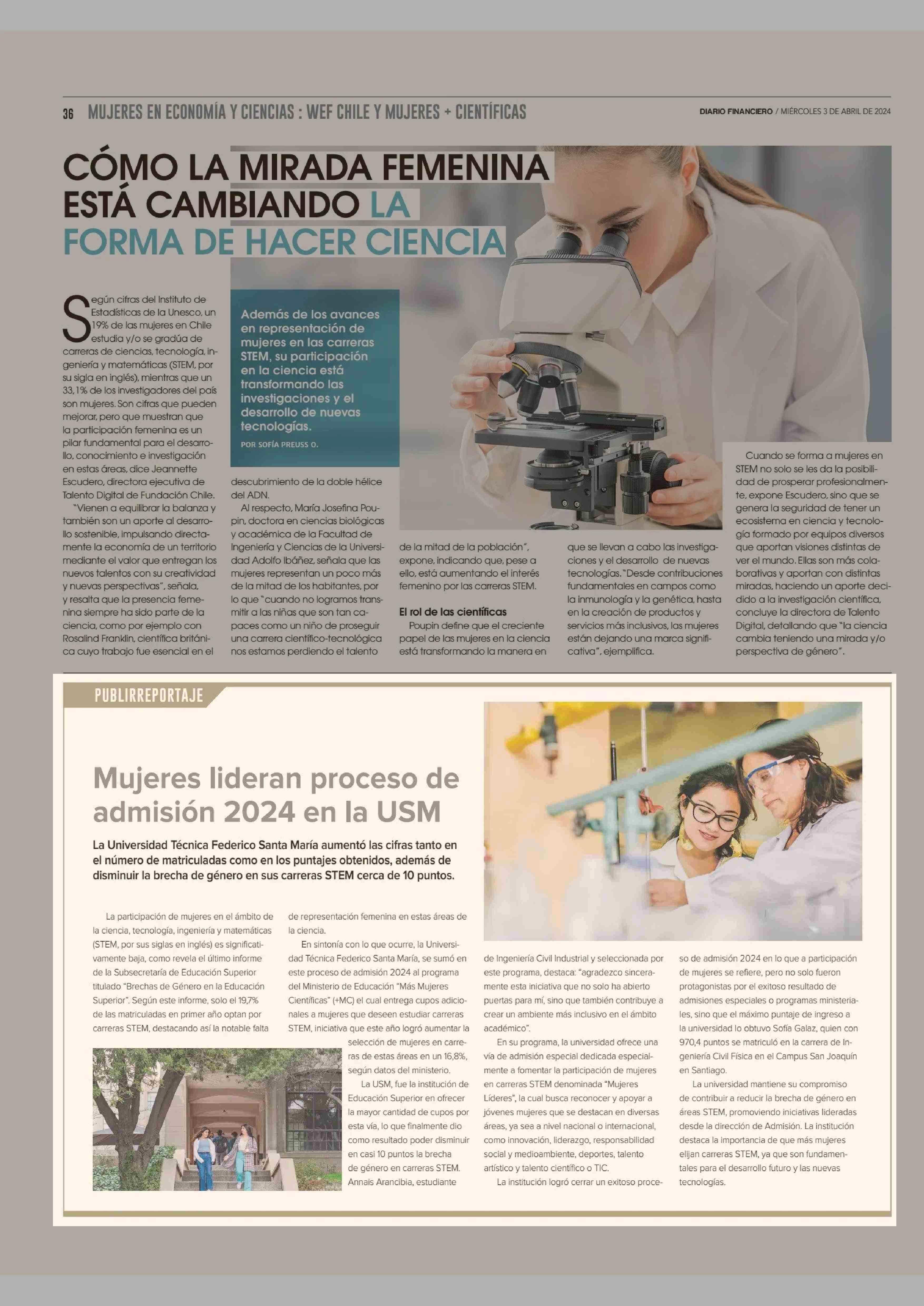 Mujeres lideran proceso de admisión 2024 en la USM 03-04-2024 Diario Financiero |