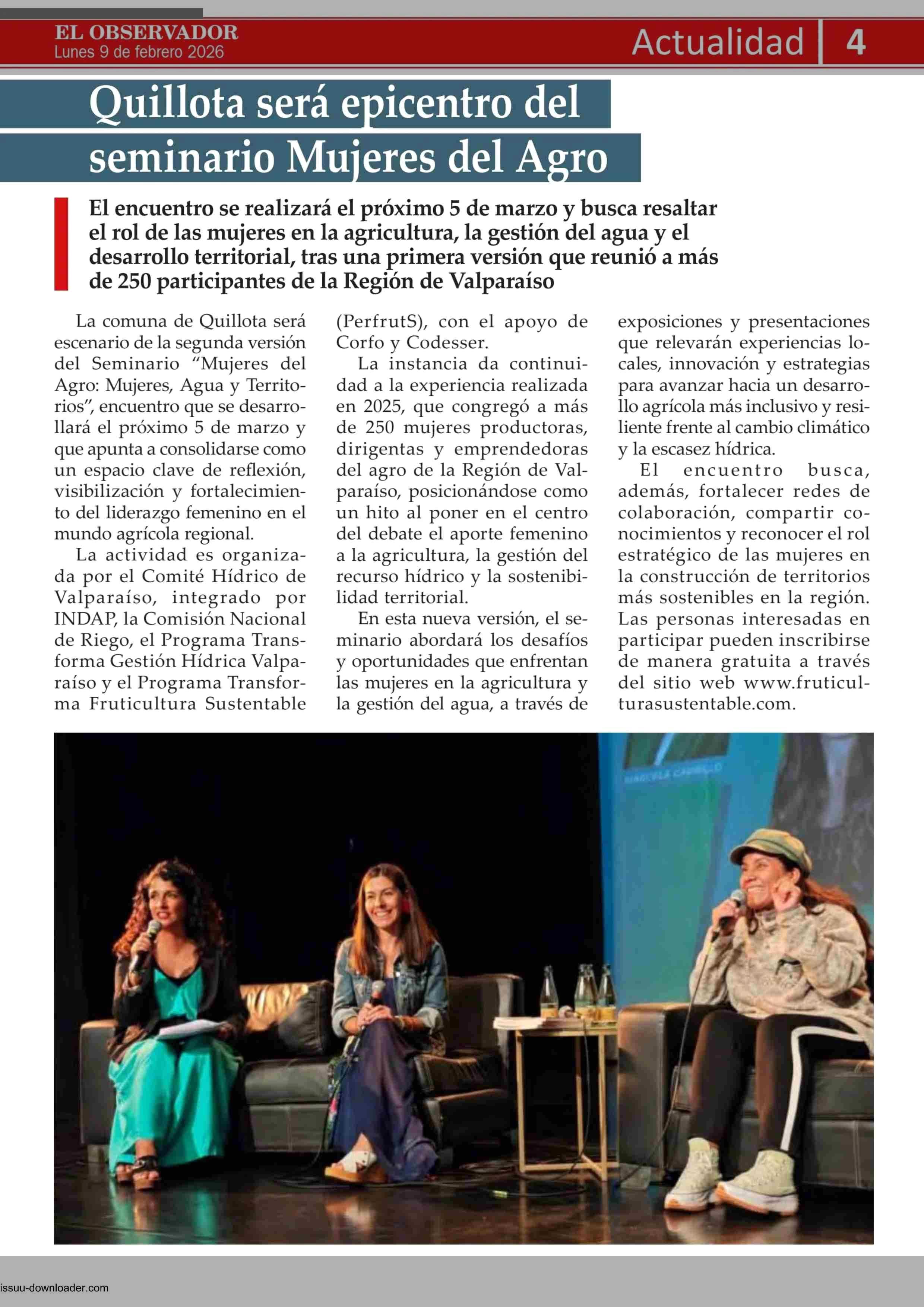 Quillota será epicentro del seminario Mujeres del Agro 09-02-2026 El Observador Vespertino |