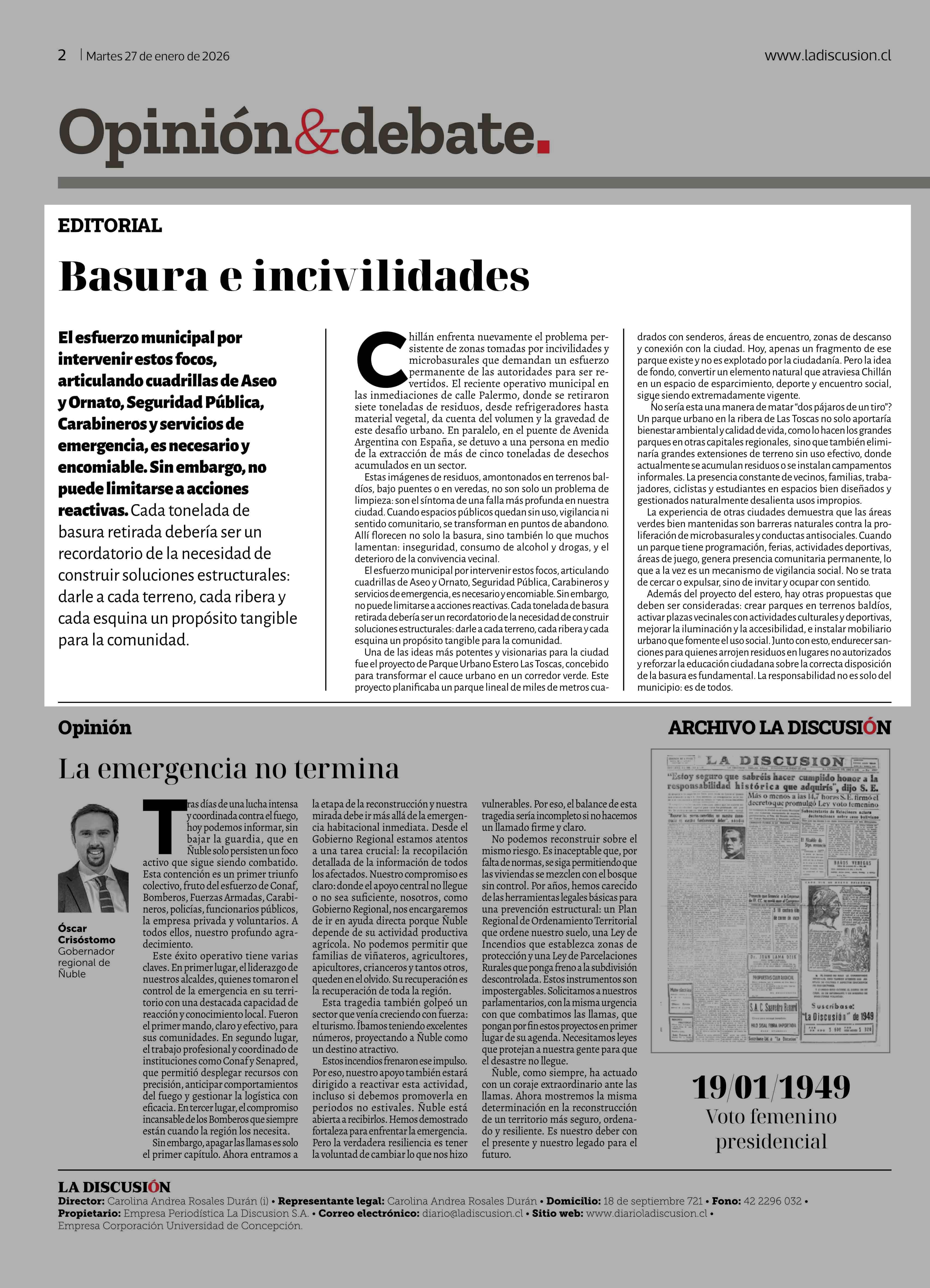Fecha: 27-01-2026 Sector: Editorial Región: Región del Ñuble