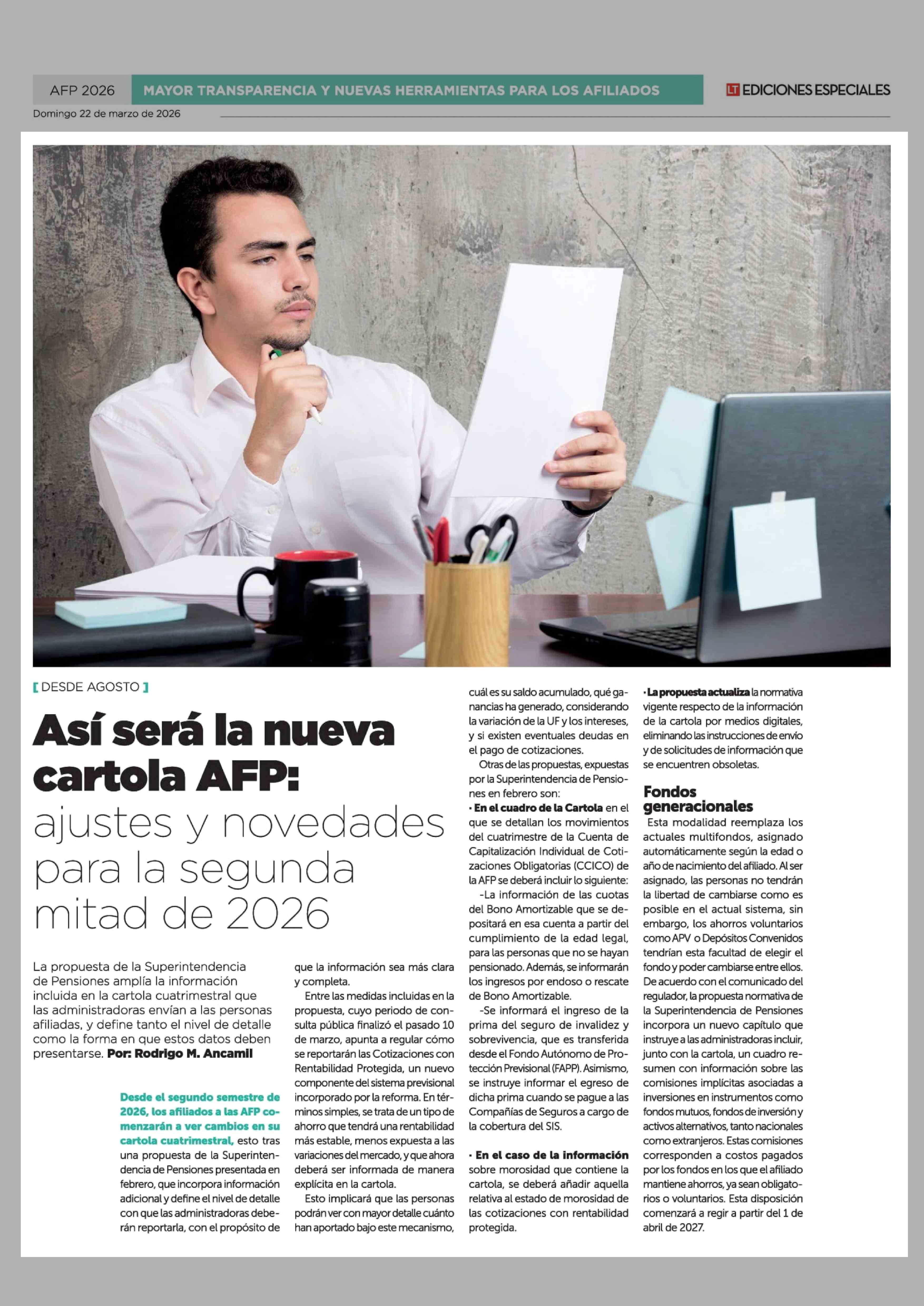 Título: Así será la nueva cartola AFP: ajustes y novedades para la segunda mitad de 2026