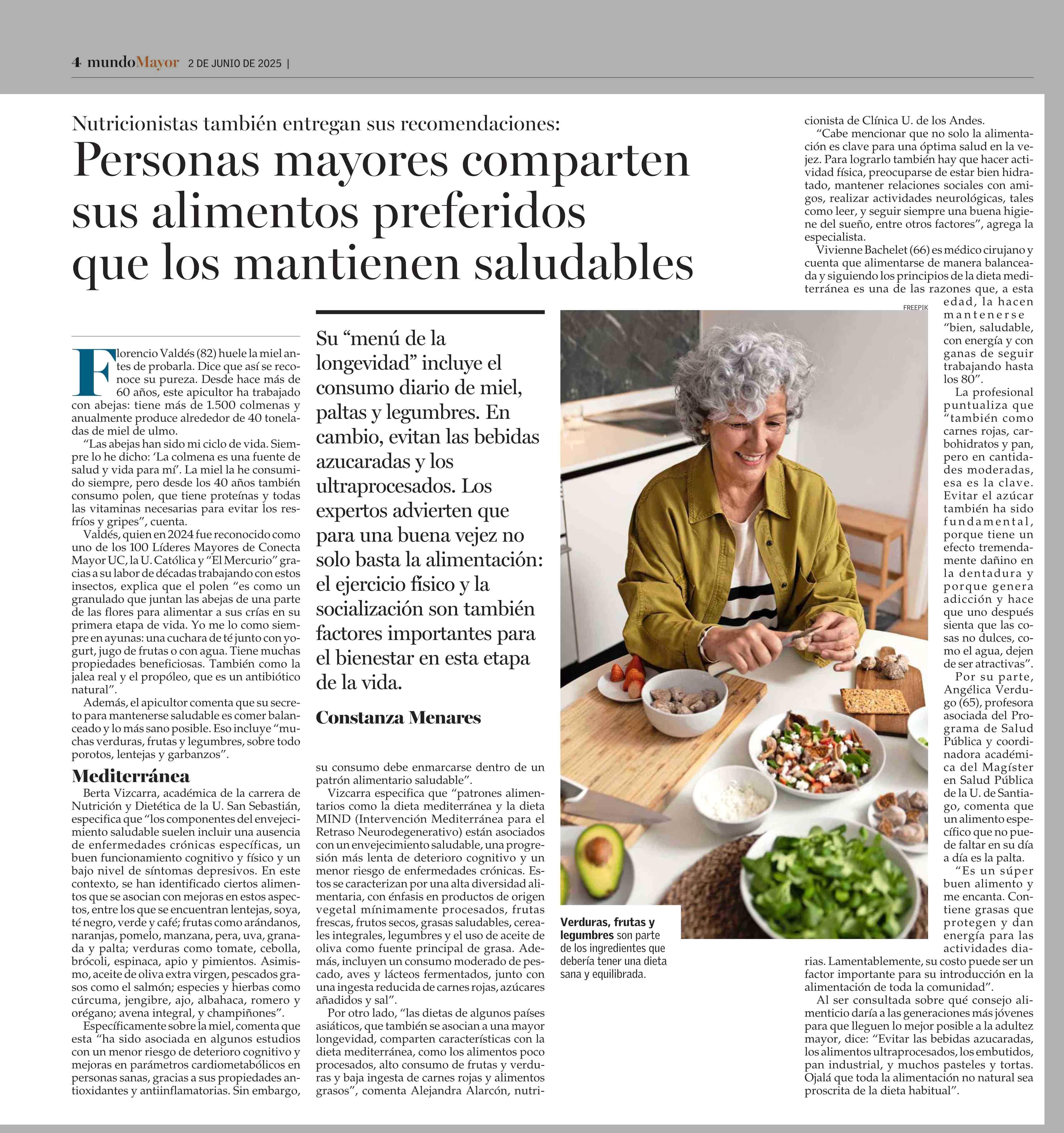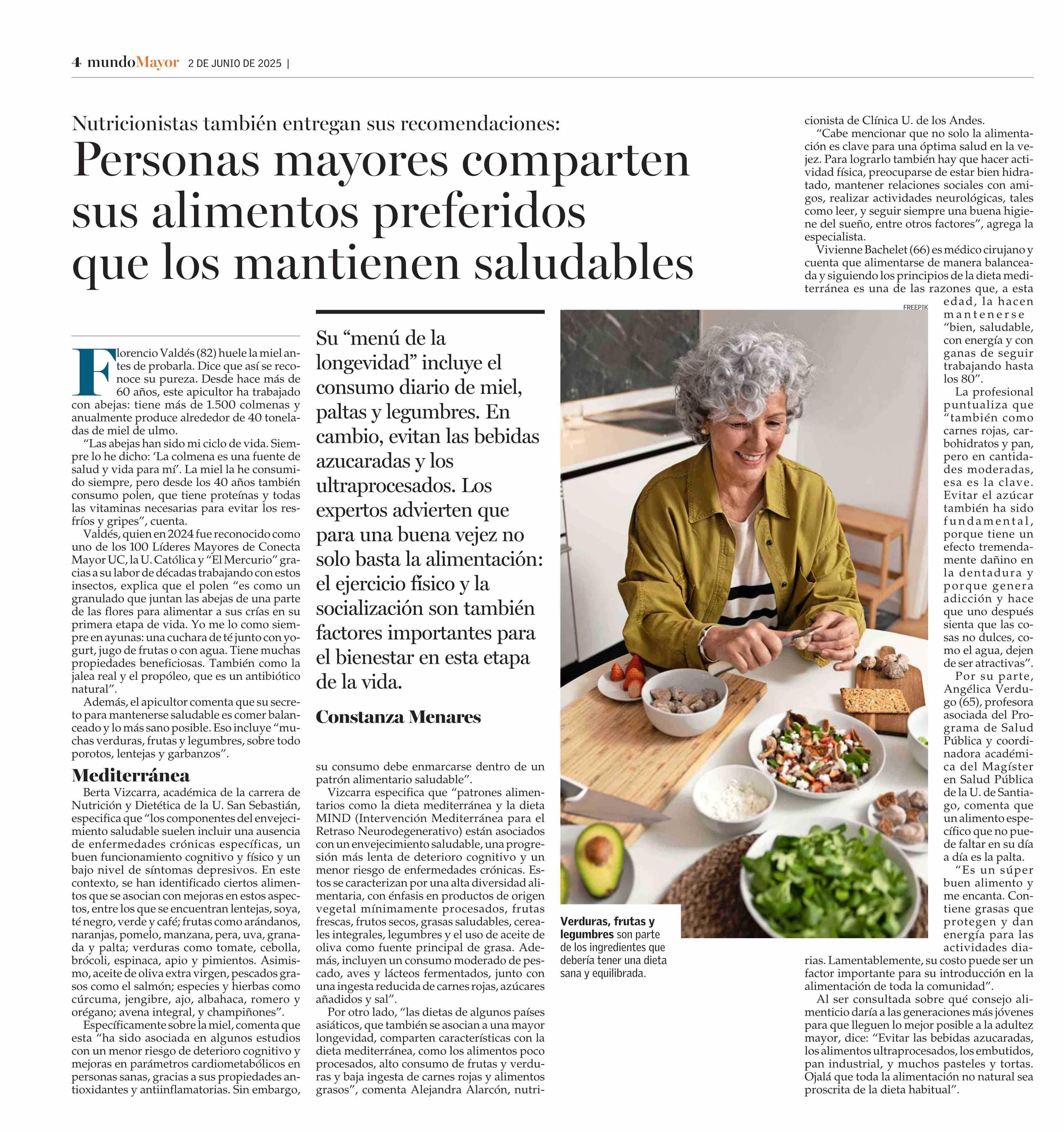 Personas mayores comparten sus alimentos preferidos que los mantienen saludables 02-06-2025 El Mercurio |