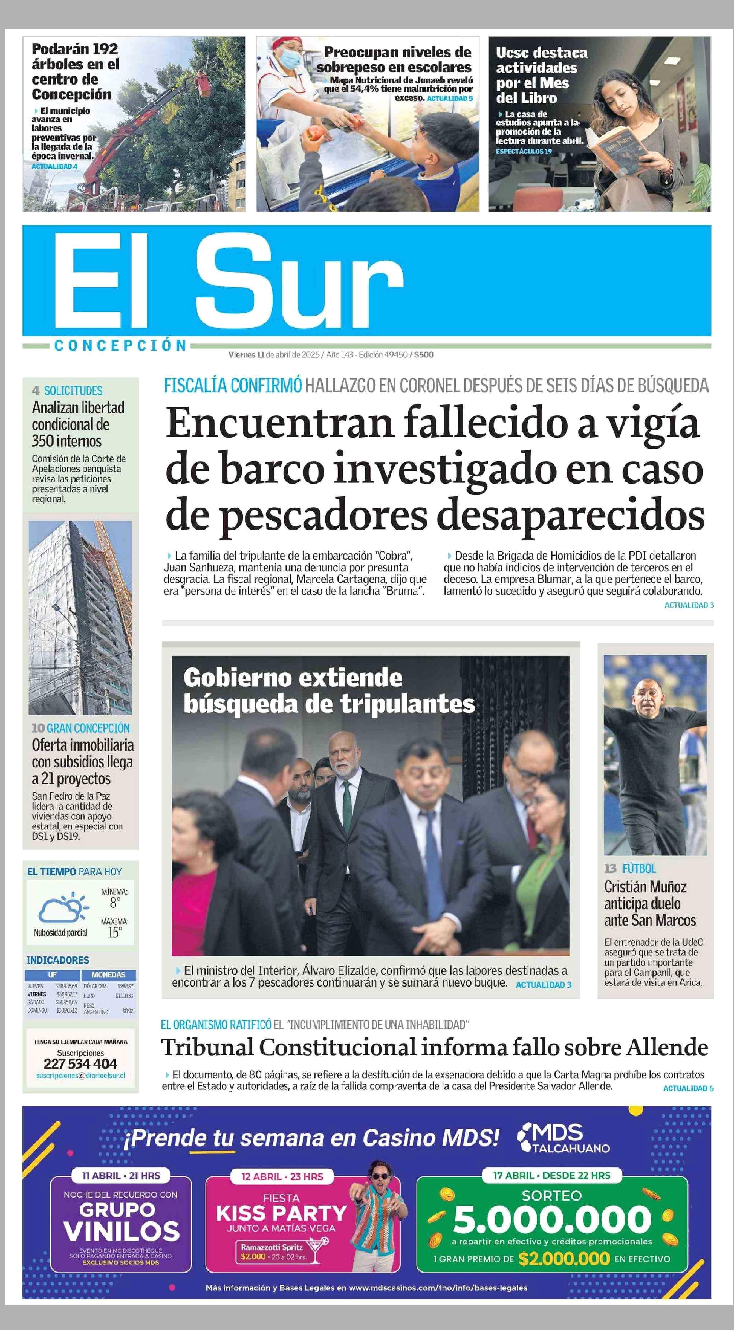 | Fecha: | 11-04-2025 | Sector: | Portada | Región: | Región del Bío-Bío |