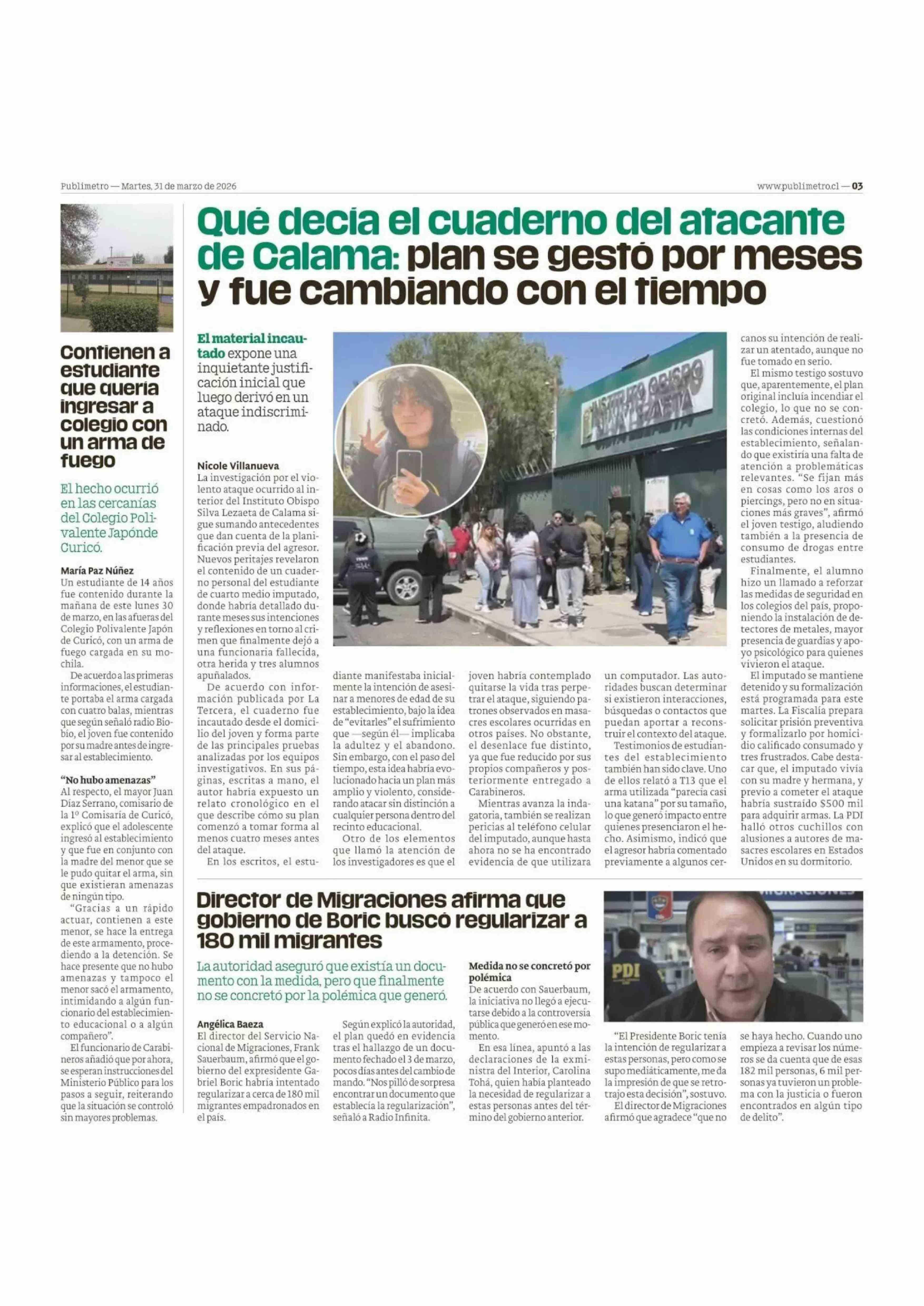 Fecha: 31-03-2026 Sector: Noticia general Región: Región Metropolitana de Santiago