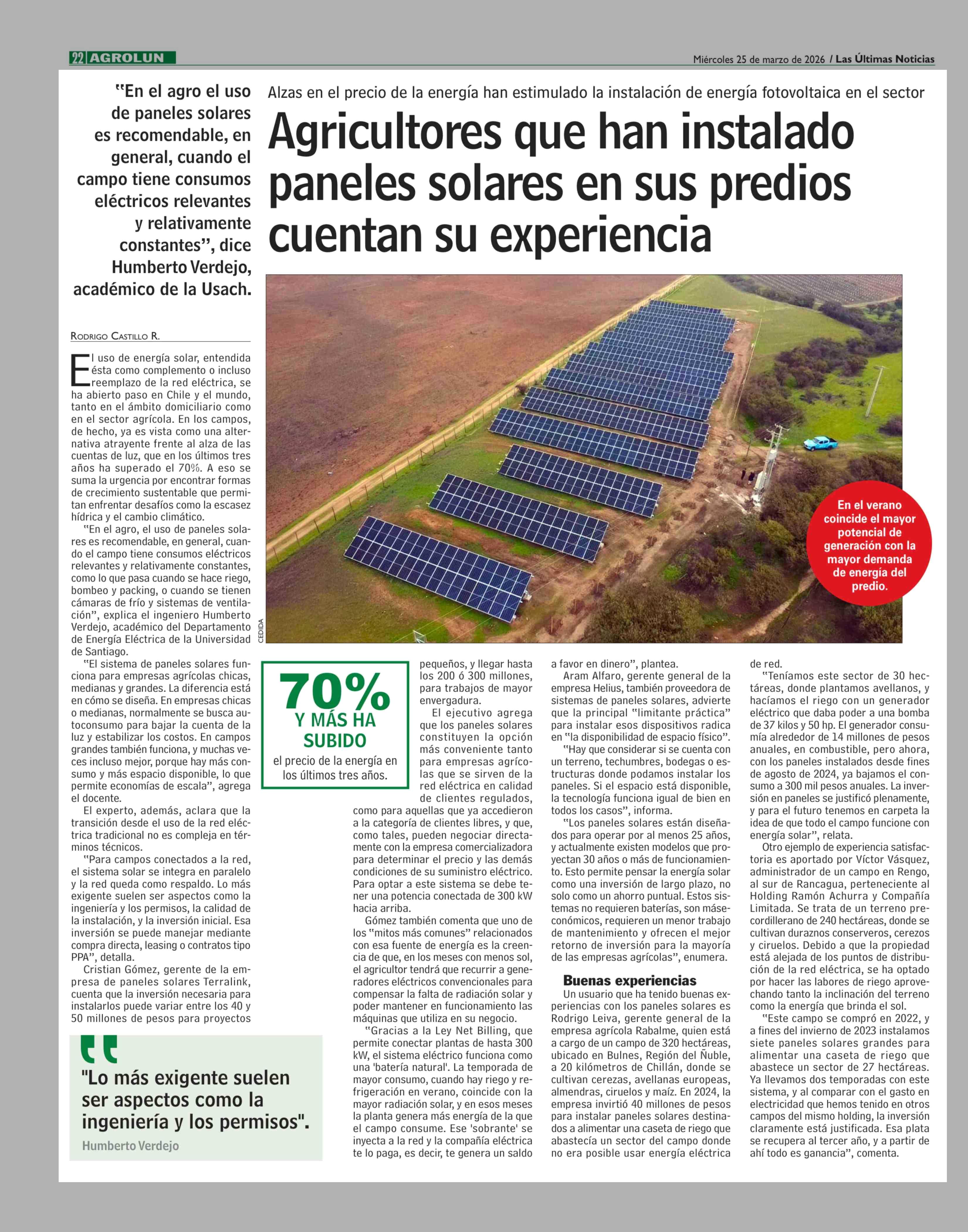 Título: Agricultores que han instalado paneles solares en sus predios cuentan su experiencia