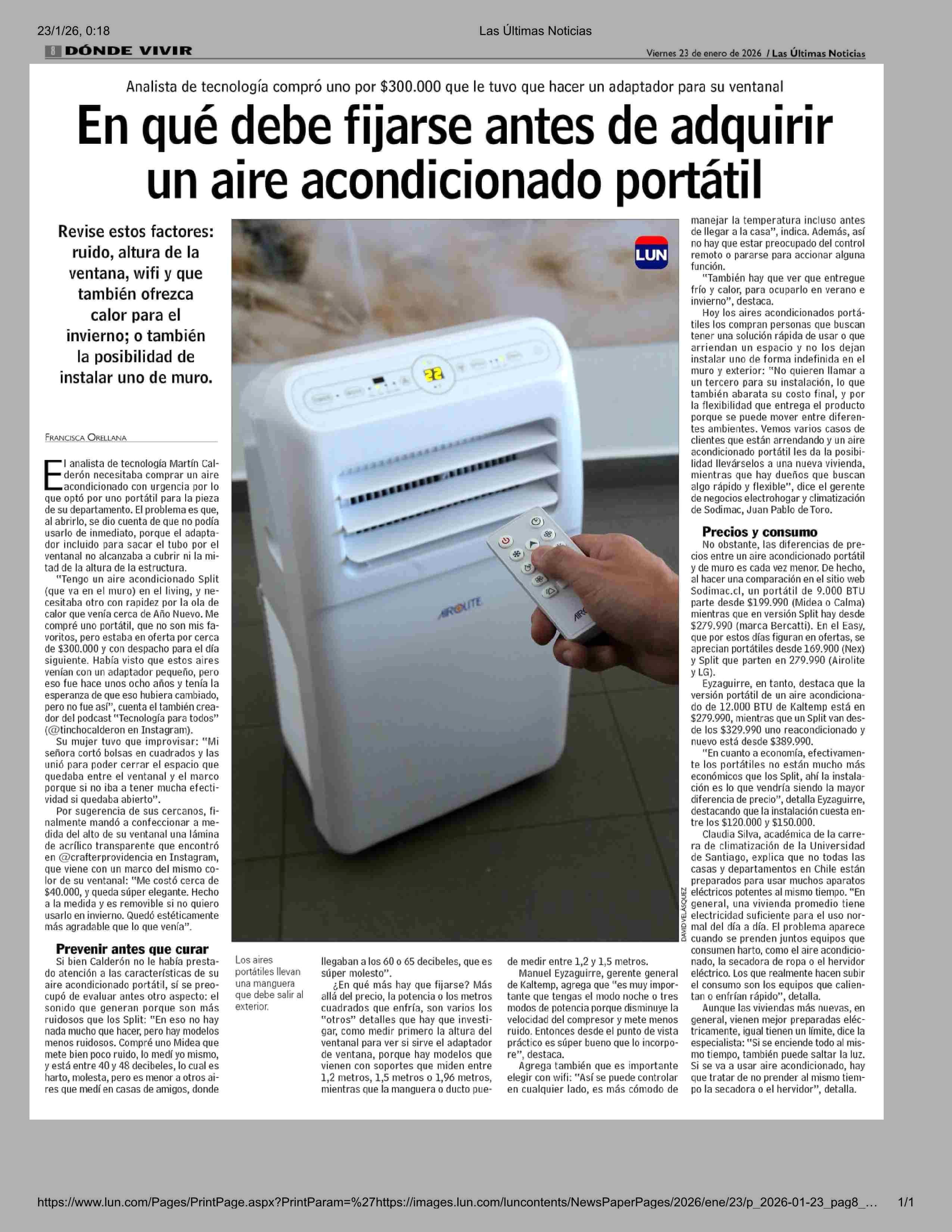 En qué debe fijarse antes de adquirir un aire acondicionado portátil 23-01-2026 Las Últimas Noticias |