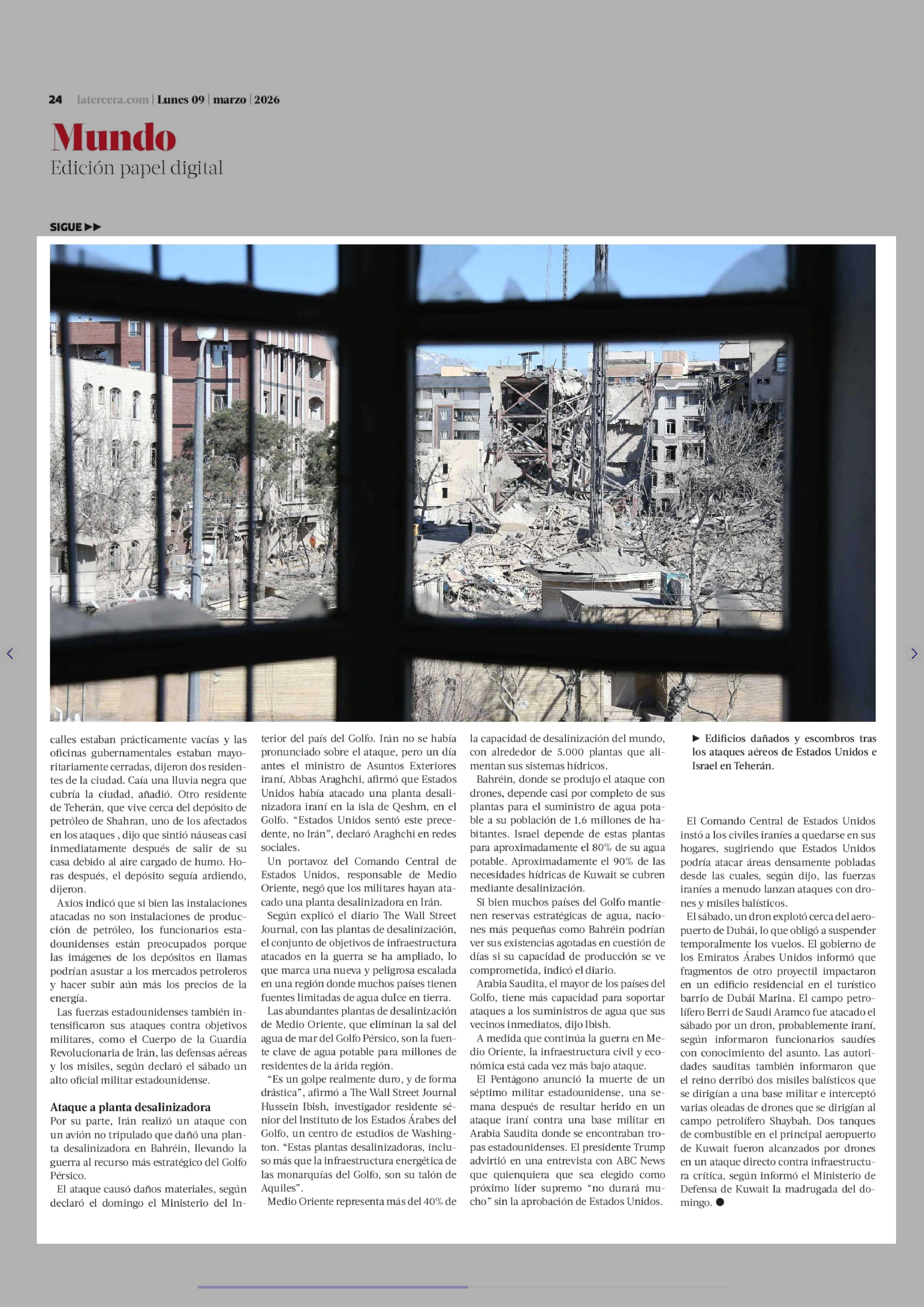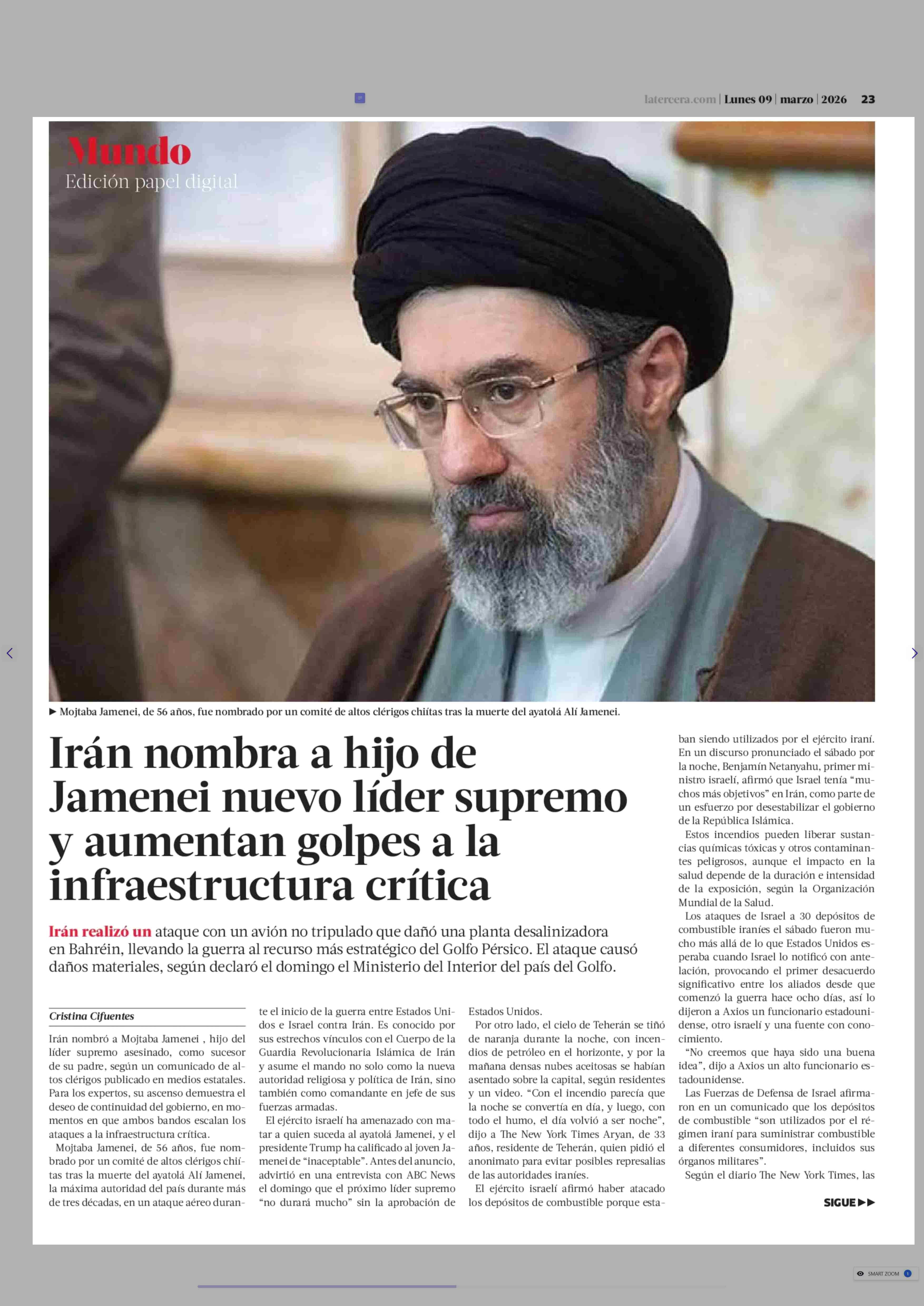 Irán nombra a hijo de Jamenei nuevo líder supremo y aumentan golpes a la infraestructura crítica 09-03-2026 La Tercera |