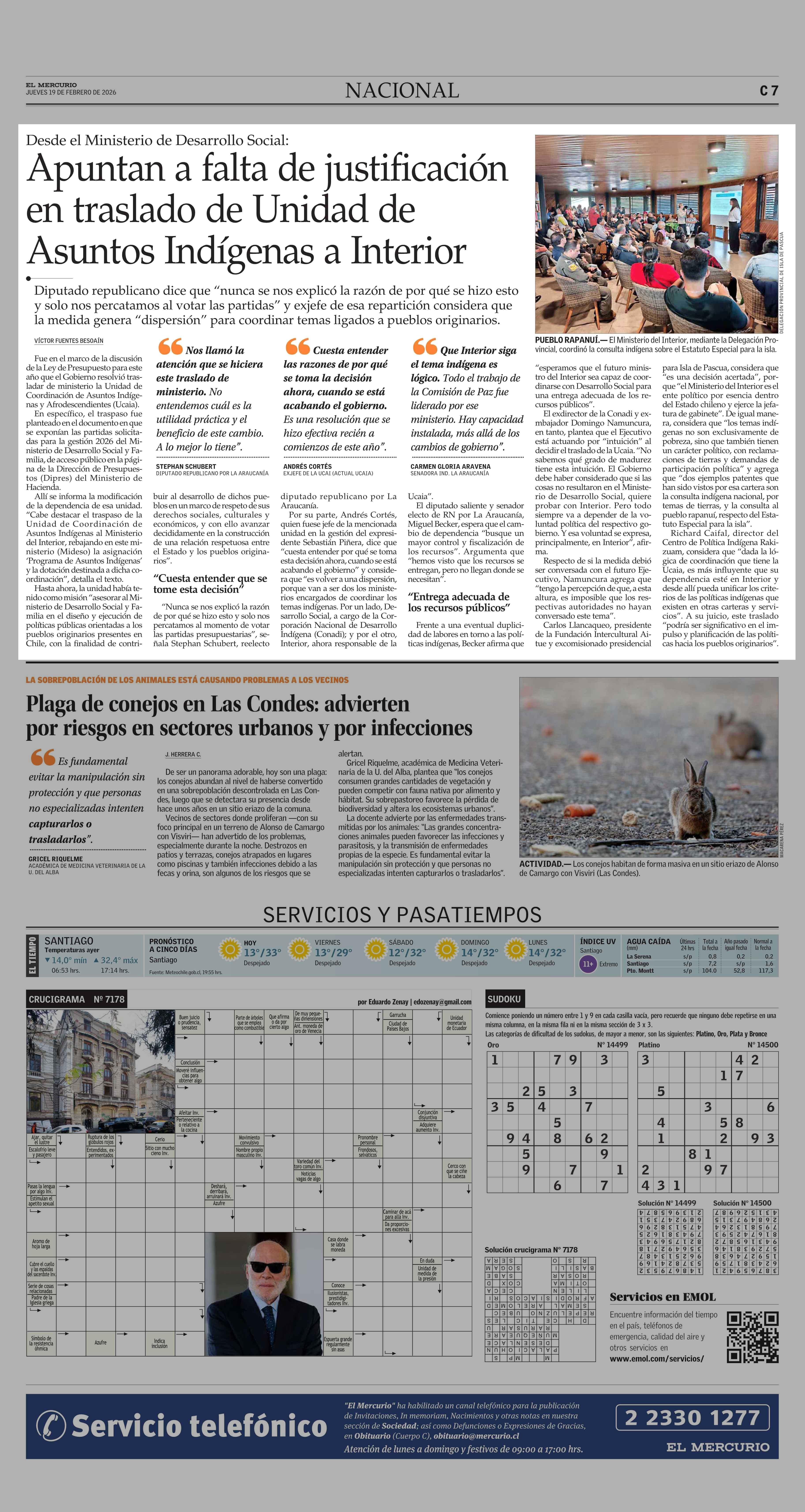 Apuntan a falta de justificación en traslado de Unidad de Asuntos Indígenas a Interior 19-02-2026 El Mercurio |